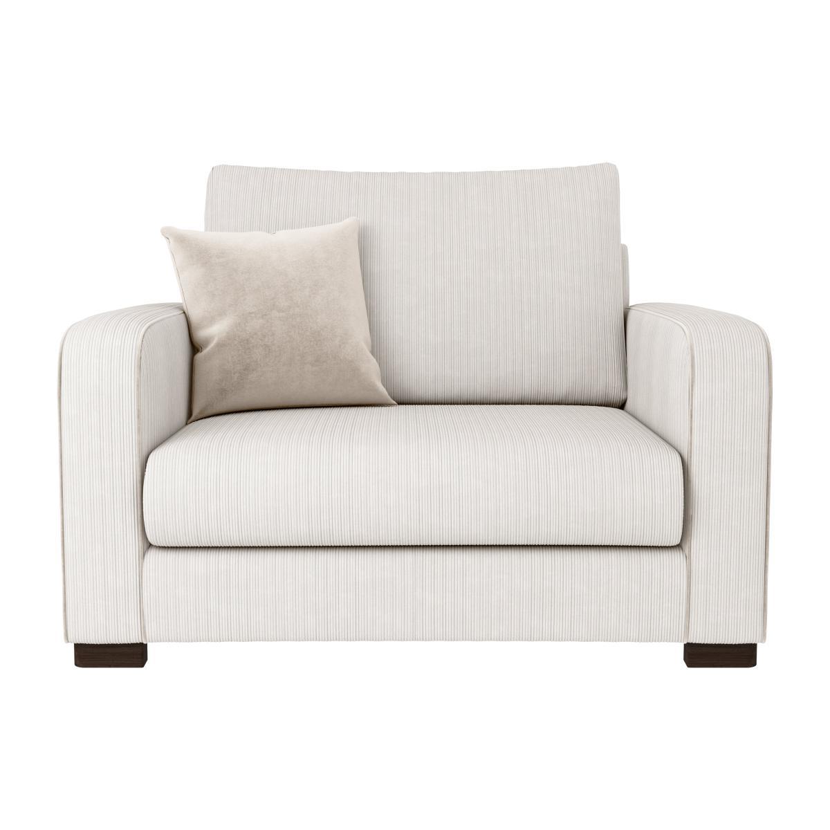 Made with comfort in mind, the Carson Snuggle Chair would make a welcome addition to any home. Boasting a sprung, foam-filled extra deep seat, and a fibre-wrapped foam back cushion, this chair is the perfect place to curl up in after a long day. This timeless armchair features stylish and hard wearing corduroy upholstery, available in a choice of vibrant and trendy colours and styled with a piped edge detailing and complementing black wooden feet for a sophisticated look. This armchair also features removable cushion covers for easy care, and is supplied with a matching scatter cushion. Did you know, we now offer a 10 year frame guarantee on this sofa. To find out more, please. To check out our handy sizing guide to help you find out if you’ll be able to get your new furniture into your home.