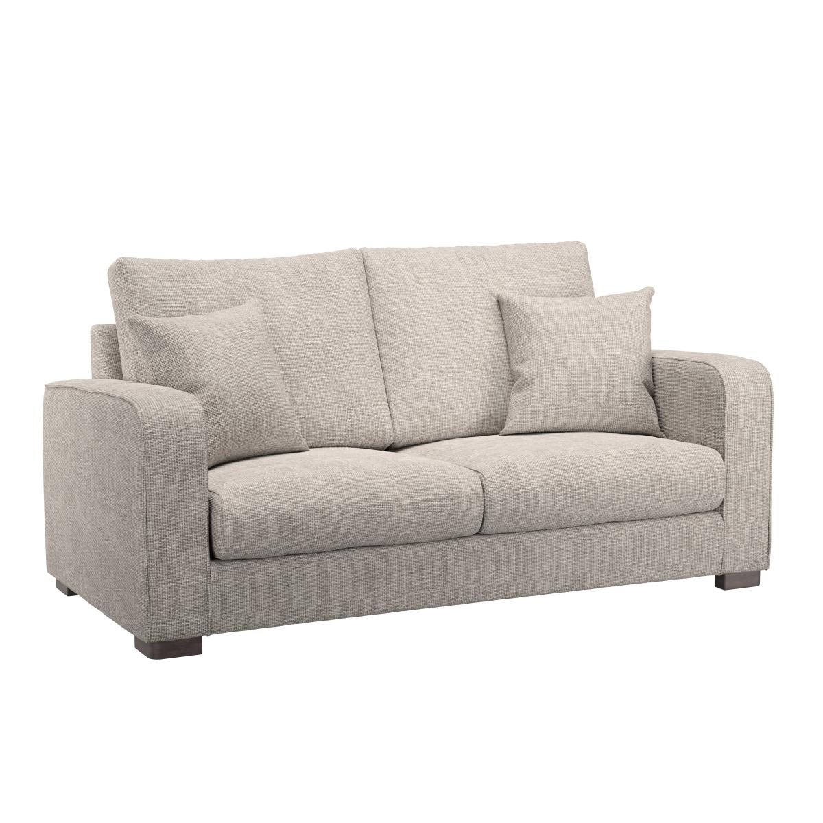 Designed with comfort in mind, the Carson Small 3 Seater Sofa would make a welcome addition to any home and is especially ideal for smaller living room spaces. Boasting sprung, foam-filled extra deep seats, and fibre-wrapped foam back cushions, this sofa is the perfect place to sink back into after a long day. This stylish sofa features soft and hard-wearing chunky chenille upholstery and styled with a piped edge detailing and complementing dark wooden feet for a sophisticated look. This sofa also features removable cushion covers for easy care, and is supplied with two matching scatter cushions.