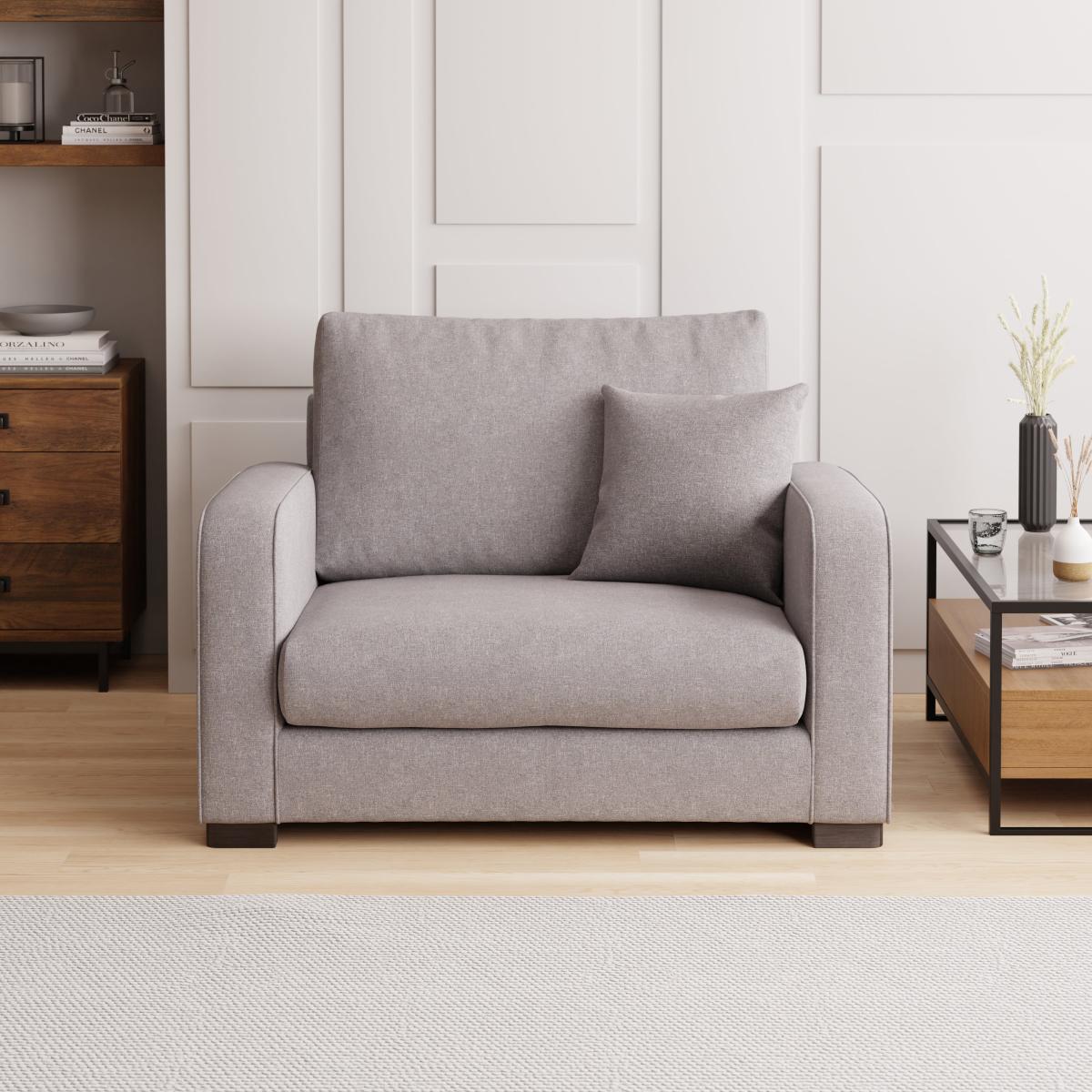 The Carson soft texture snuggle seat is a great choice for creating a cosy and inviting space, thanks to its plush, tactile fabric. I love how versatile it is; it works particularly well in contemporary or minimalist interiors where the neutral grey can anchor the colour palette without overpowering it. Practical styling tips include pairing it with layered throws and cushions in mixed textures or subtle patterns to add interest. It also looks excellent with contrasting furniture pieces, such as warm wood or even metallic accents, to soften the overall aesthetic and make the space feel more welcoming. Overall, it’s a reliable addition to any living room looking for a balance of comfort and understated style.