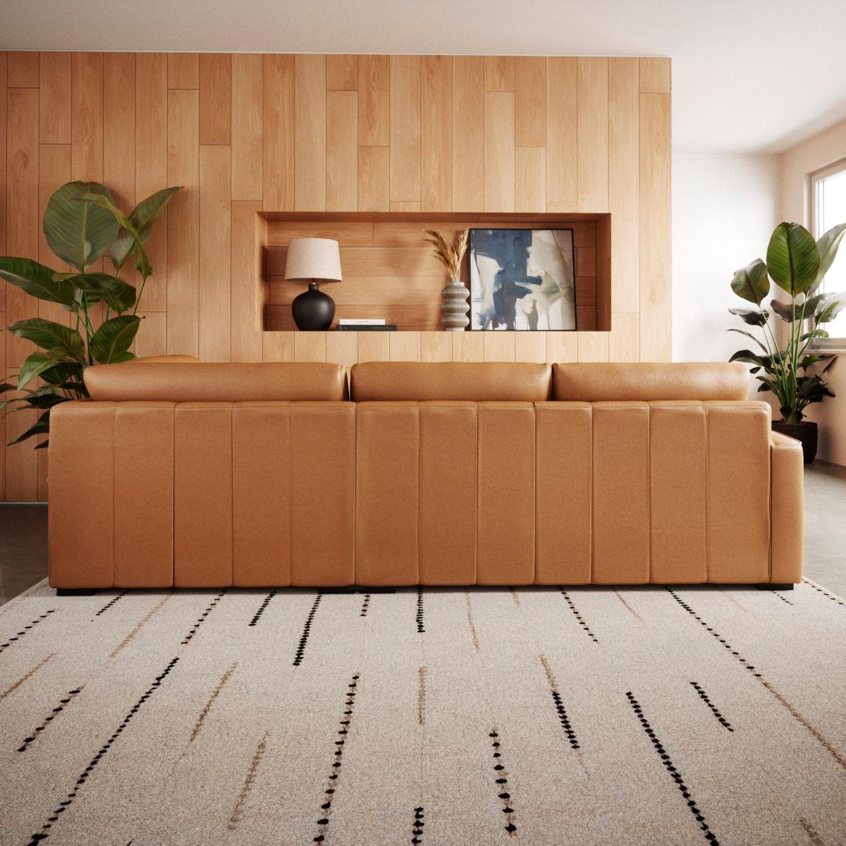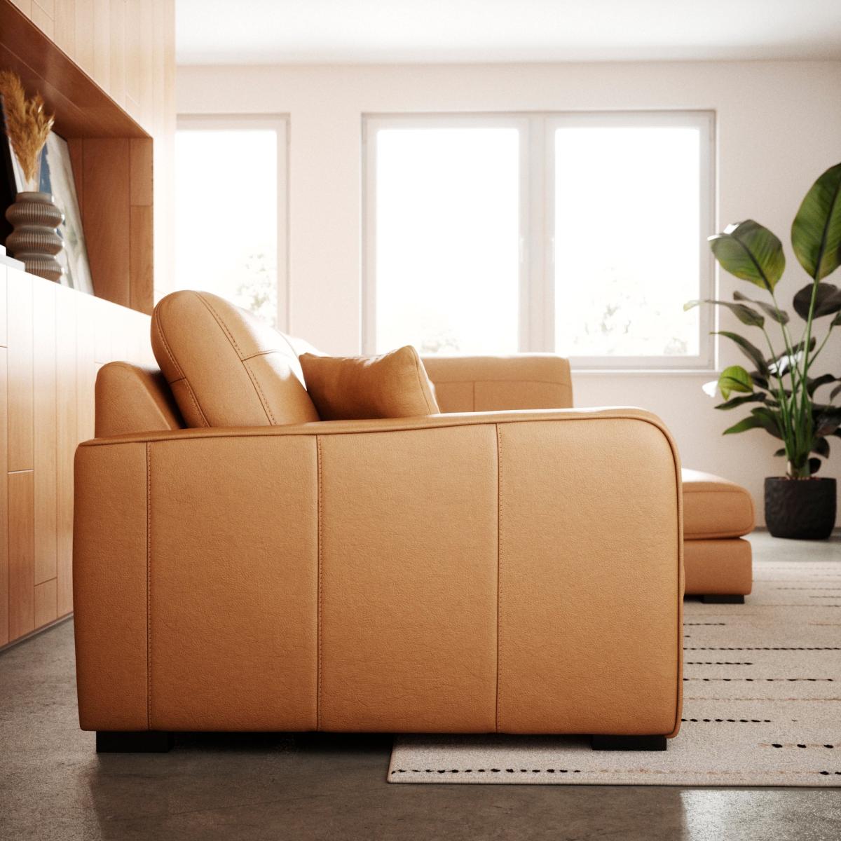 * Modern leather upholstery * Piped edge detailing * Foam filled seat * Fibre filled back cushions * Left and Right facing options This sofa offers generous seating space, ideal for family gatherings, entertaining guests, or enjoying quiet moments of relaxation. Its deep, plush cushions provide superior comfort, while the vintage leather upholstery brings a warm, rich texture to your home.