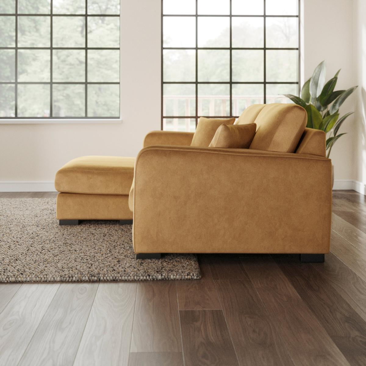 * Hardwearing velvet fabric* Piped edge detailing* Foam filled seat* Fibre filled back cushions* Adjustable orientation Crafted from soft vintage velvet, this chic piece is designed to maximise your space while providing luxurious comfort. The elegant piped edge detailing adds a refined touch, while the foam-filled seat cushions invite you to lounge in style. With supportive fibre-filled back cushions, this corner chaise is ideal for both casual gatherings and relaxing evenings at home.