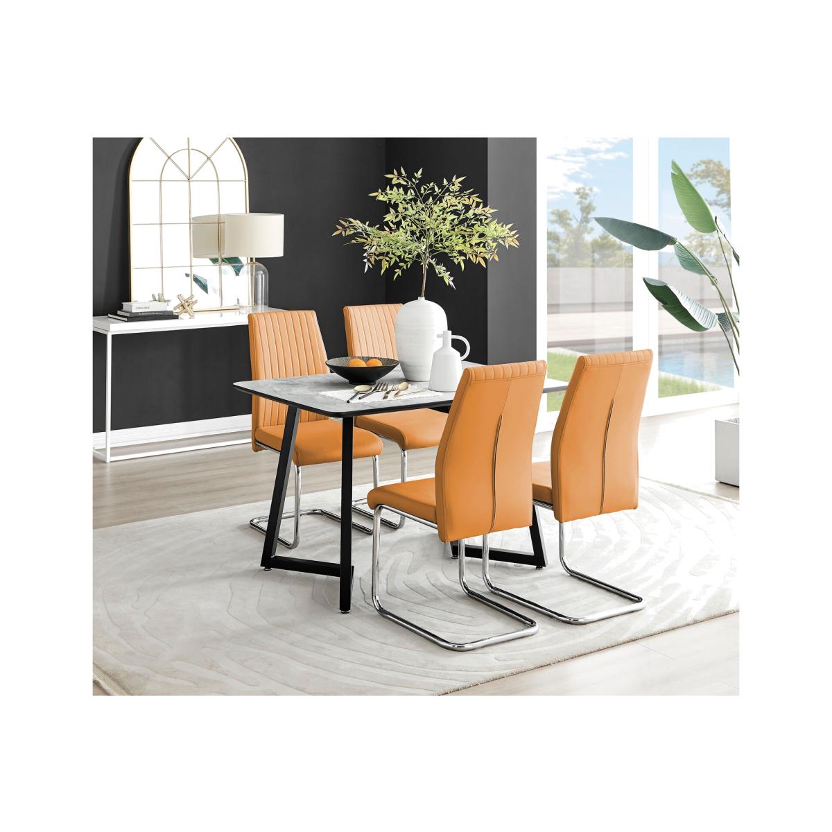 The Carson rectangular 4 seater marble-effect dining table is a statement piece for the interiors connoisseur. It oozes luxury and opulence. Boasting a 80cm x 120cm rectangular melamine tabletop made from on-trend marble effect veneer which is also scratch resistant! It's a gorgeous 6 seater dining table perfect for family dinners. Sitting on striking statement U shaped legs that feature an angular indent, in black powder-coated metal. A sleek, stylish dining table with minimalist industrial vibes. This beautifully designed dining table will set the scene for a stylish and luxurious room. Want to complete the look Shop our stylish dining chair range for ultimate ergonomic comfort.
