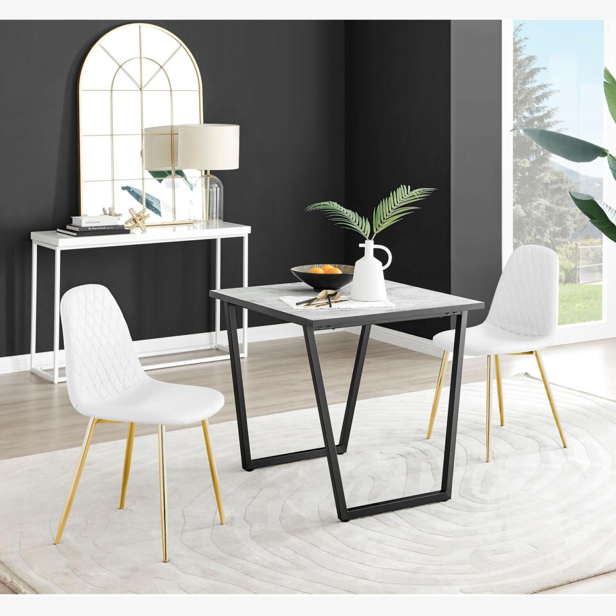The Carson square 2 seater marble-effect dining table is a statement piece for the interiors connoisseur. It oozes luxury and opulence. Featuring an 80cm x 80cm square melamine tabletop made from on-trend marble effect veneer which is also scratch resistant! It's a compact 2 seater dining table perfect for smaller spaces. Sitting on striking statement U shaped legs in black powder-coated metal. A sleek, stylish dining table with minimalist industrial vibes. This beautifully designed dining table will set the scene for a stylish and luxurious room. Want to complete the look Shop our stylish dining chair range for ultimate ergonomic comfort.