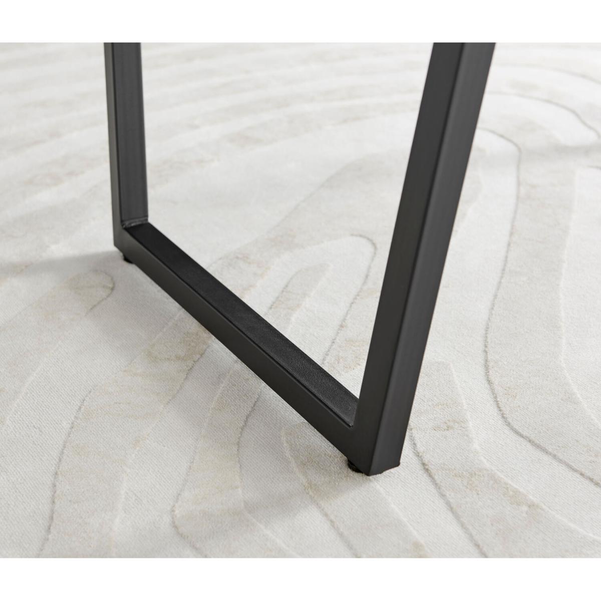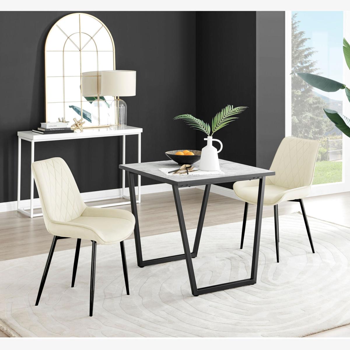 The Carson square 2 seater marble-effect dining table is a statement piece for the interiors connoisseur. It oozes luxury and opulence. Featuring an 80cm x 80cm square melamine tabletop made from on-trend marble effect veneer which is also scratch resistant! It's a compact 2 seater dining table perfect for smaller spaces. Sitting on striking statement U shaped legs in black powder-coated metal. A sleek, stylish dining table with minimalist industrial vibes. This beautifully designed dining table will set the scene for a stylish and luxurious room. Want to complete the look Shop our stylish dining chair range for ultimate ergonomic comfort.
