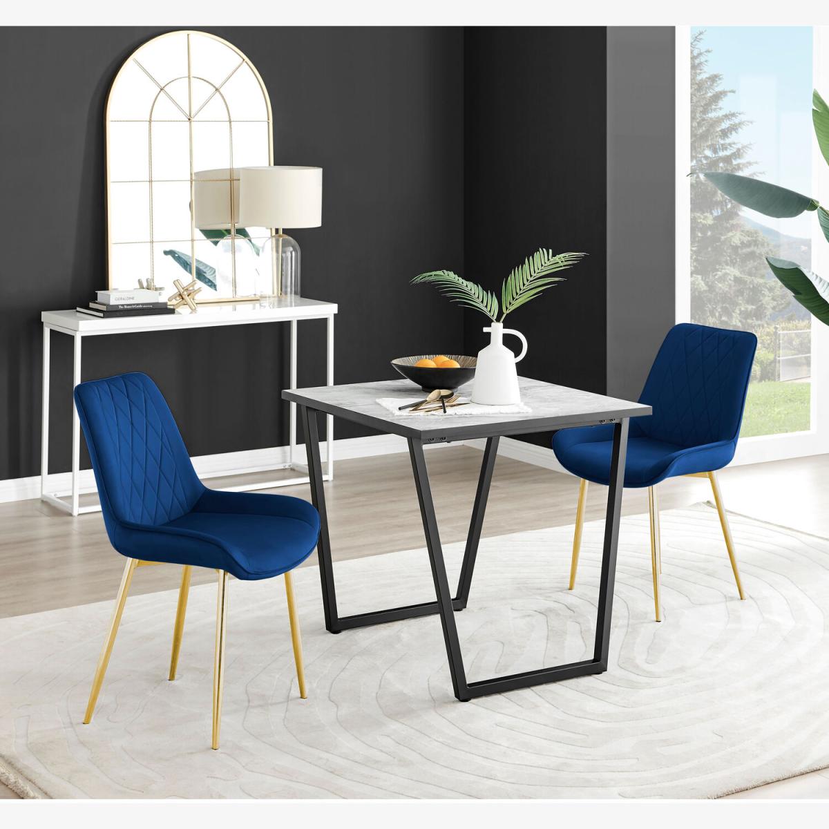The Carson square 2 seater marble-effect dining table is a statement piece for the interiors connoisseur. It oozes luxury and opulence. Featuring an 80cm x 80cm square melamine tabletop made from on-trend marble effect veneer which is also scratch resistant! It's a compact 2 seater dining table perfect for smaller spaces. Sitting on striking statement U shaped legs in black powder-coated metal. A sleek, stylish dining table with minimalist industrial vibes. This beautifully designed dining table will set the scene for a stylish and luxurious room. Want to complete the look Shop our stylish dining chair range for ultimate ergonomic comfort.