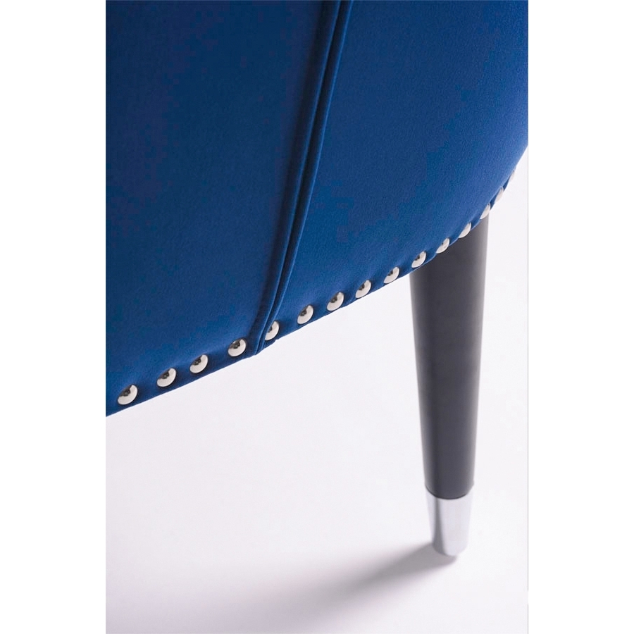 Traditional deep buttoning gives character to this handsome chair Can be used as a dining or occasional chair Finely tailored velvet upholstery Comfortable foam seat with sprung Stained solid ash legs Elegant and practical polished chrome ferrules Minimal assembly required, simply attach legs