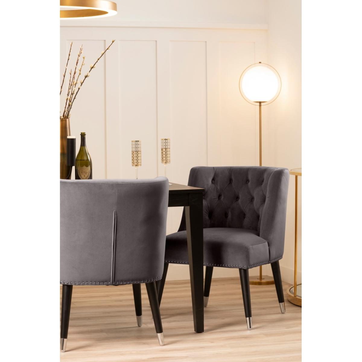 I love this chair for its versatile, timeless appeal and sophisticated storm grey upholstery that easily coordinates with various colour schemes. It works particularly well in modern or Scandinavian-inspired interiors due to its clean lines and tufted detailing, but can also add a touch of understated elegance to more classic settings. Practical styling tips include pairing it with a wooden dining table for warmth, or contrasting it with colourful tableware and accessories for a contemporary vibe. Its understated colour and soft fabric make it a solid choice for both everyday dining and more formal occasions, providing comfort without compromising on style.