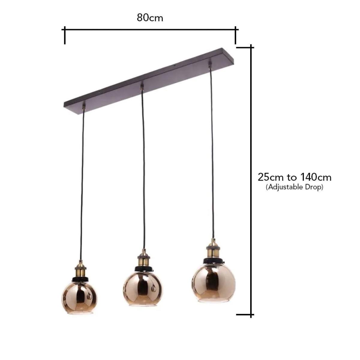 Pendant bar lights are perfect for giving a practical style of illumination to your home, working particularly well over a kitchen island or breakfast bar where the elongated structure gives light that’s ideally tailored to the setting! The Carter 3 light pendant bar utilises robust bronze bulb holders and sophisticated glass shades to create a look that’s perfect for an industrial décor, combining these features with black cables and a black ceiling fixture to give a simple modern spin to the designs.
