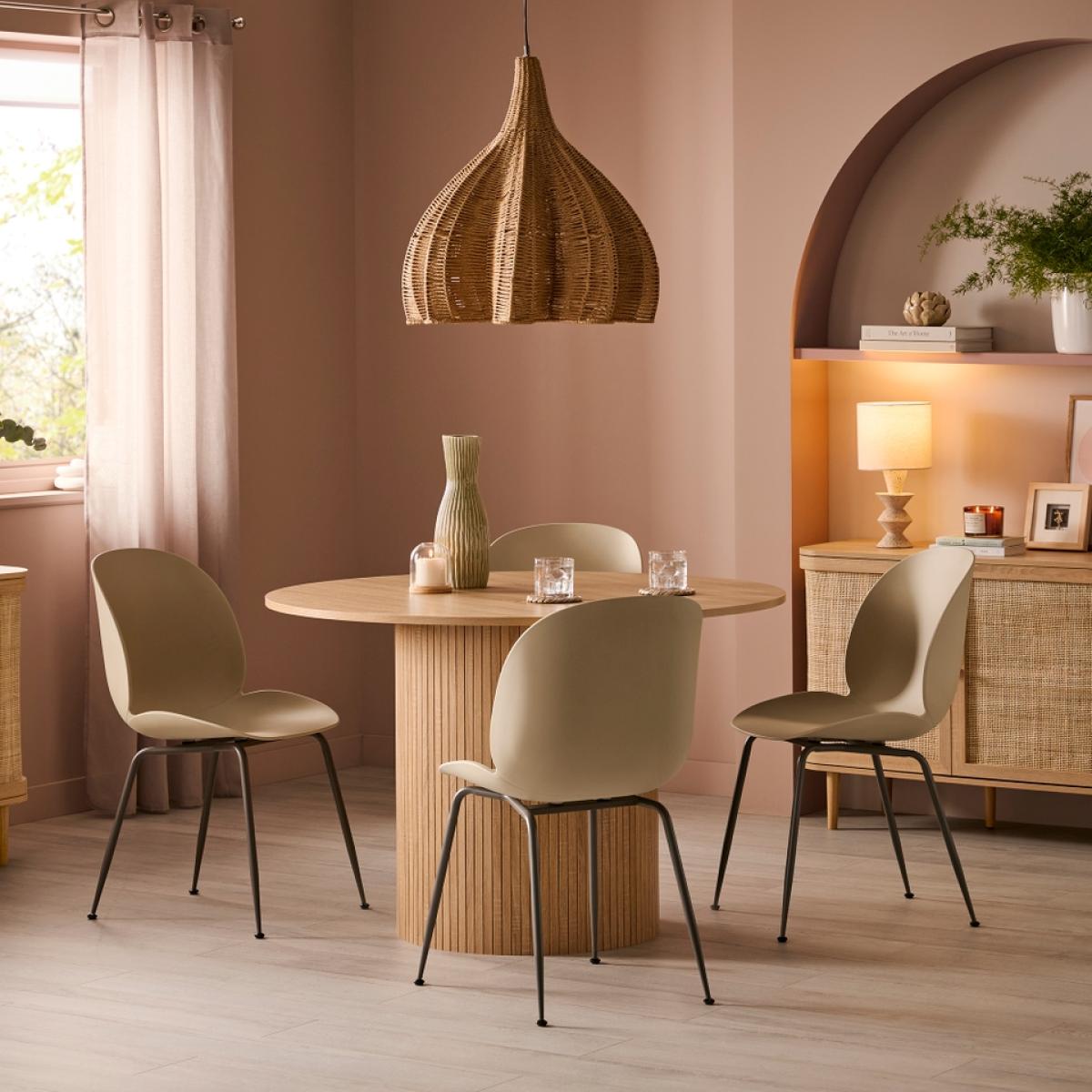 The mid-century design of the Carter dining chairs will give your dining space a retro feel, while the one piece moulded seat offer a modern take on this look. The gently shaped back rest and seat provide support to enhance your dining experience. The soft taupe colourway means this set of two dining chairs will blend seamlessly with many interior decor styles.