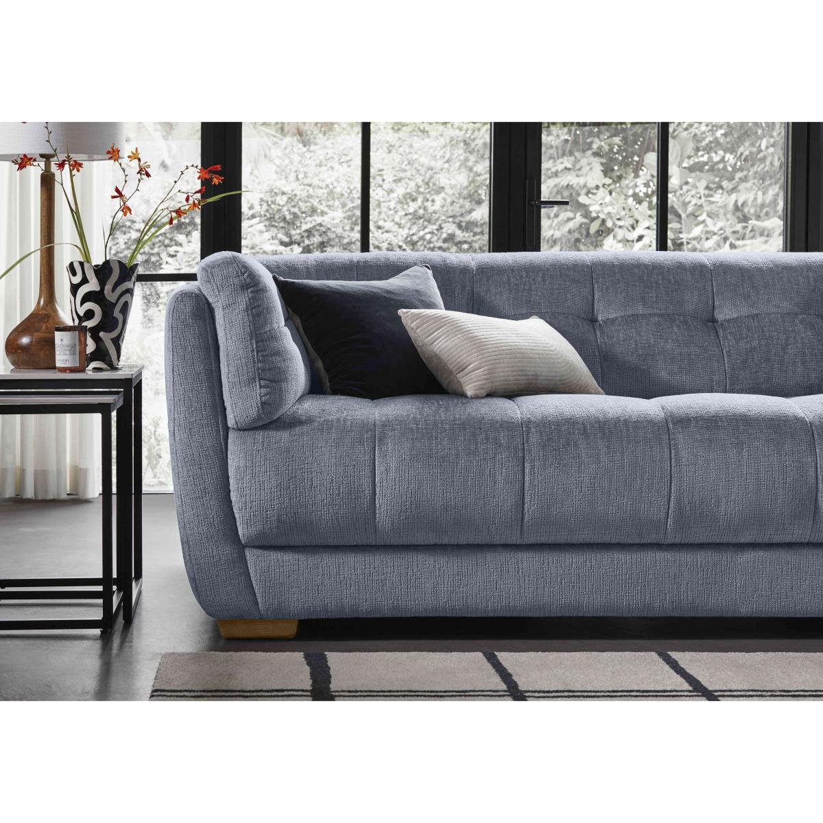 The perfect blend of traditional craftsmanship, inspired design and superb comfort, our Cartier collection of sofas, chairs and footstools brings glam style to smaller living spaces. This stunning collection combines contemporary curved silhouettes with Chesterfield-inspired details and sacrifices nothing in the pursuit of comfort. Seats and backs are sprung to ensure even weight distribution and top-to-toe support, and the pocket spring and high-quality foam cushioning promises irresistible comfort. Pieces are available in a wide range of leather and fabric upholstery styles and colours. The Cartier range is handmade exclusively for Furniture Village by At The Helm. With its stylish modern curves, deep cushioning with beautiful buttoning, and luxurious upholstery, this At The Helm sofa offers a glam twist on classic Chesterfield style. Why you'll love it Gorgeous glam style inspired by the classic Chesterfield sofa. Incredible handcrafted comfort for compact living spaces. Pocket spring seat cushioning for the ultimate in luxurious lounging. No-sag spring seat and back suspension means even weight distribution and superb support. Exceptional craftsmanship. Solid wood frame is cut and assembled by hand. Hand-cut and hand-sewn upholstery in a choice of fabric styles and colours. Wood feet in a coordinating finish. Seat, back and arms are tufted by hand. Also available upholstered in a choice of leather grades and colours. Exclusive to Furniture Village. Handmade by At The Helm, master crafter of sumptuous sofas for modern living. This 3-seater fabric sofa is part of our At The Helm Cartier collection. What you need to know Medium comfort level. Seat suspension: no-sag serpentine springs. Seat cushioning: pocket springs encapsulated in high-density foam with Dacron wrap. Back suspension: no-sag serpentine springs. Back cushioning: high- and medium-density foam encased in a Dacron wrap. Back cushioning is fixed. Arm cushioning: foam and fibre. Plump seat, back and arm cushioning regularly. Some fabrics can show wear on areas of more use or in direct sunlight. Flattening and shading of heavy wear areas on pile fabrics is unavoidable. Clean regularly using a soft brush or vacuum with the curtain attachment. Deal with any spills promptly. Professional cleaning advised for oil- and grease-based stains. Please read our upholstery care guide for more advice.