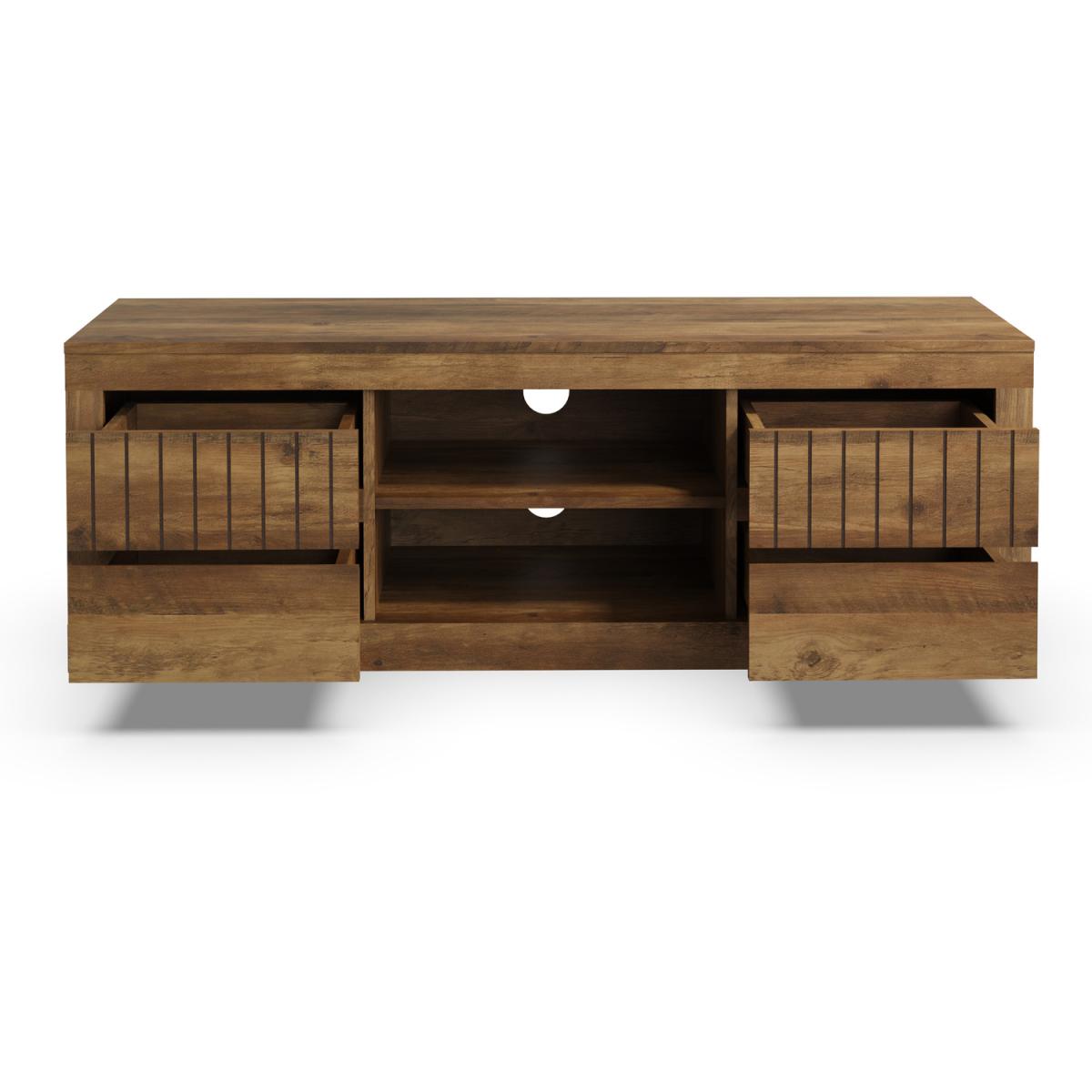 The 4 sizable drawers and twin stacked central shelves are housed within the chunky outer frame, making the Cartmel TV unit practical & stylish, suitable for all associated media. Cable management is arranged through two back panel cut outs in the central shelving unit. Suitable for most 55inch TVs without overlap although larger TVs can be supported if the screen overlap is acceptable. Also available in the Cartmel Range is a Sideboard, Lamp Table and Coffee Table.