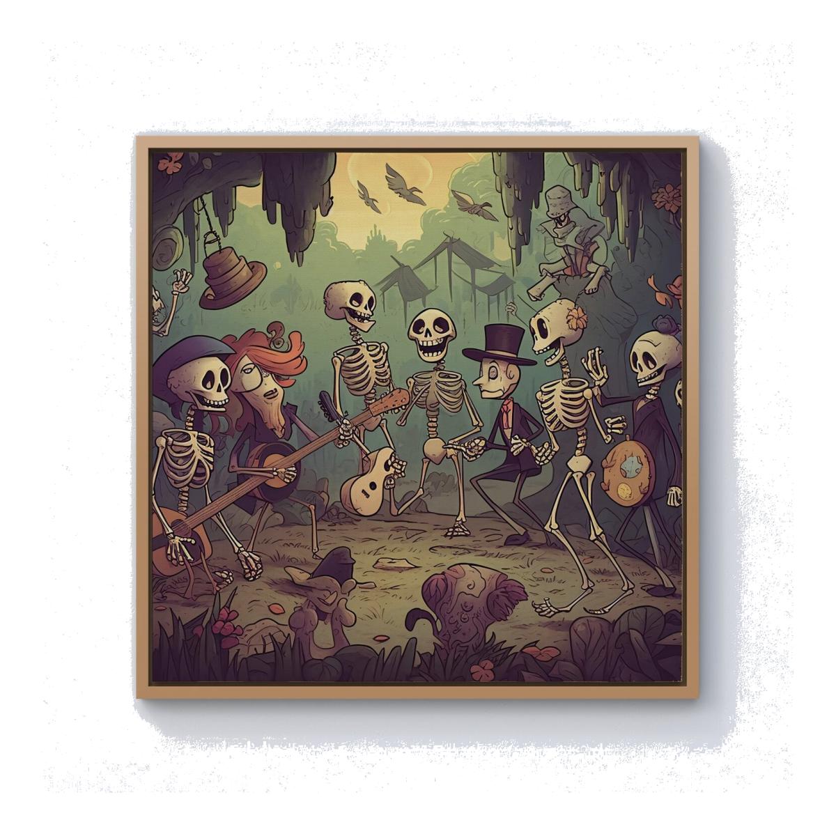 Cartoonish Skeletons Having A Party Canvas Print - Blue / 25.4cm / Pine Frame