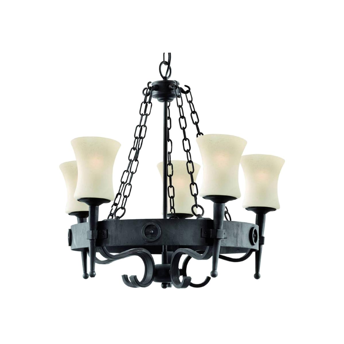 This candelabra style fitting is sure to add a bold feel to any room. The wrought iron finish adds a unique Gothic character to the fitting. This range offers many styles which allows you the freedom of choice. The lamps are positioned in a circular way to allow the light to shine throughout the room. This five light ceiling light is also available in an eight light ceiling light, and a matching wall light. Other styles are also available from the range.