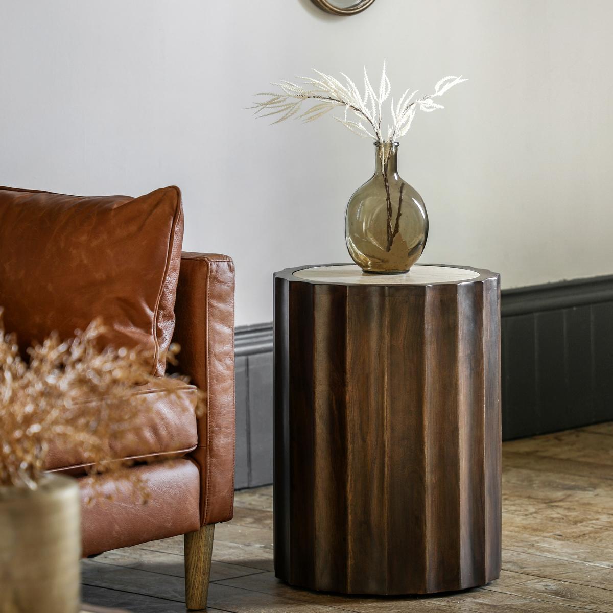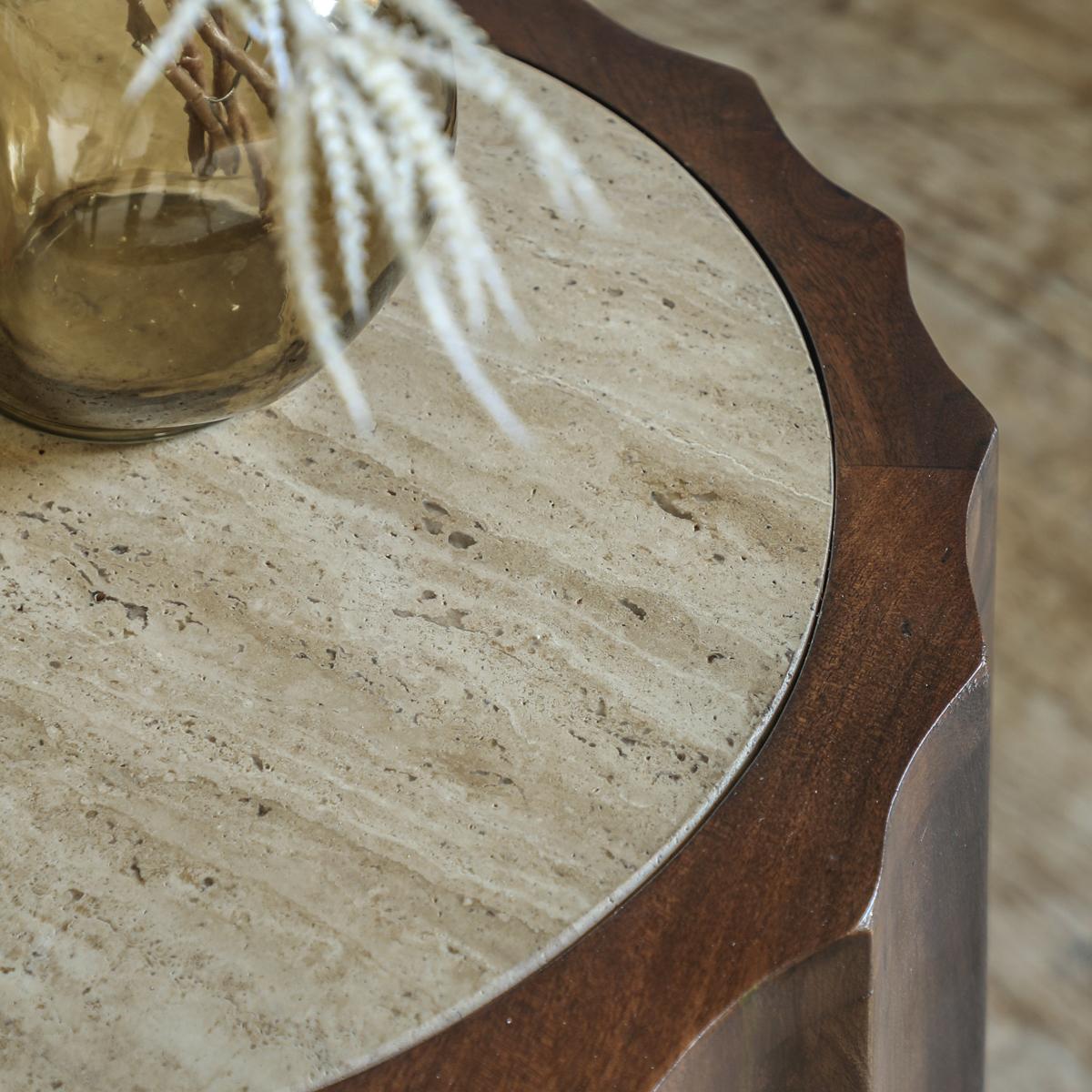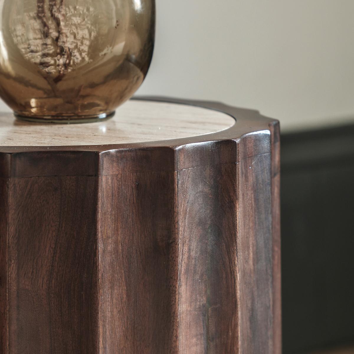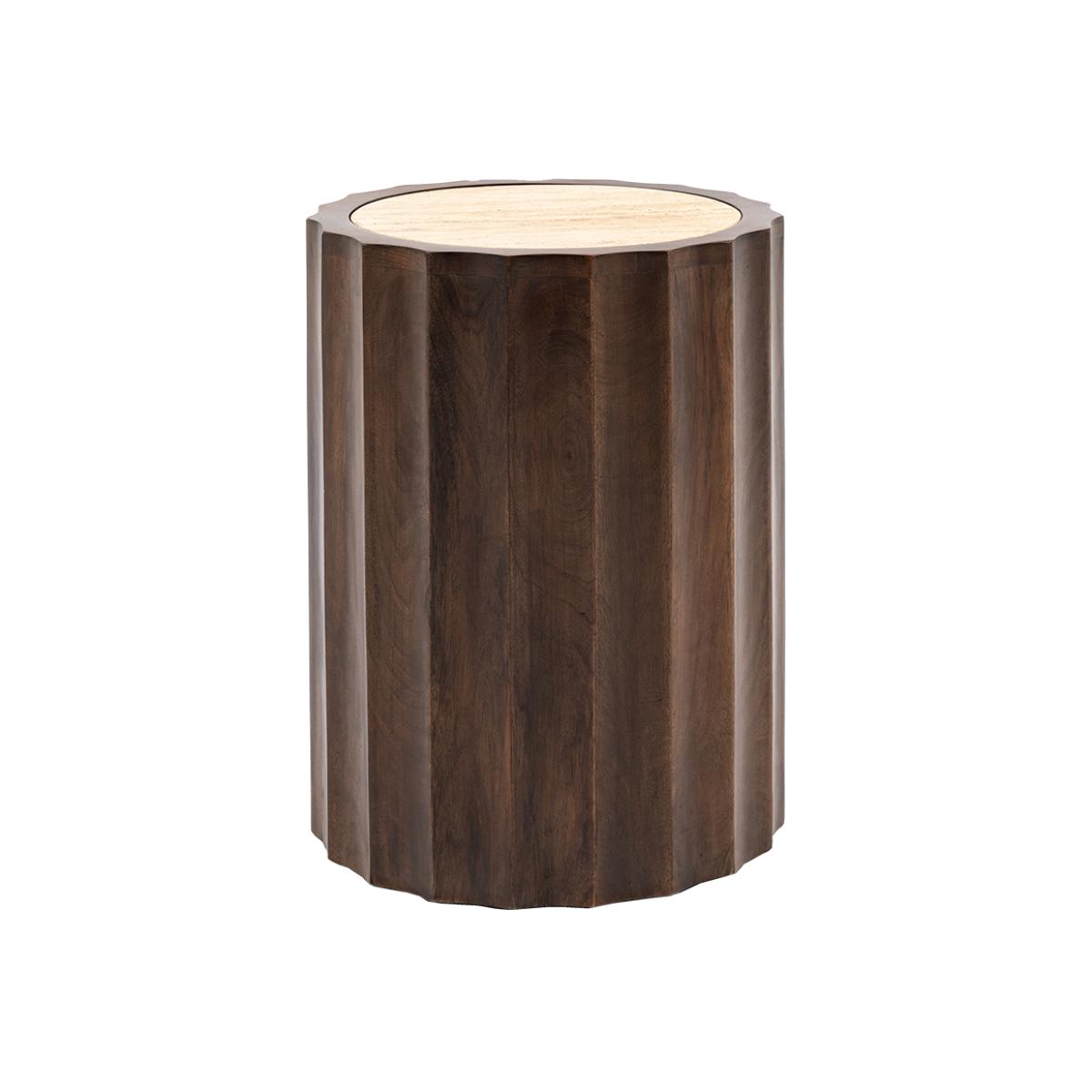 Welcome the cool confidence of the Carva Side Table into your home. Complementing the ribbed mango wood, the travertine stone centre adds a touch of sophistication to your home.