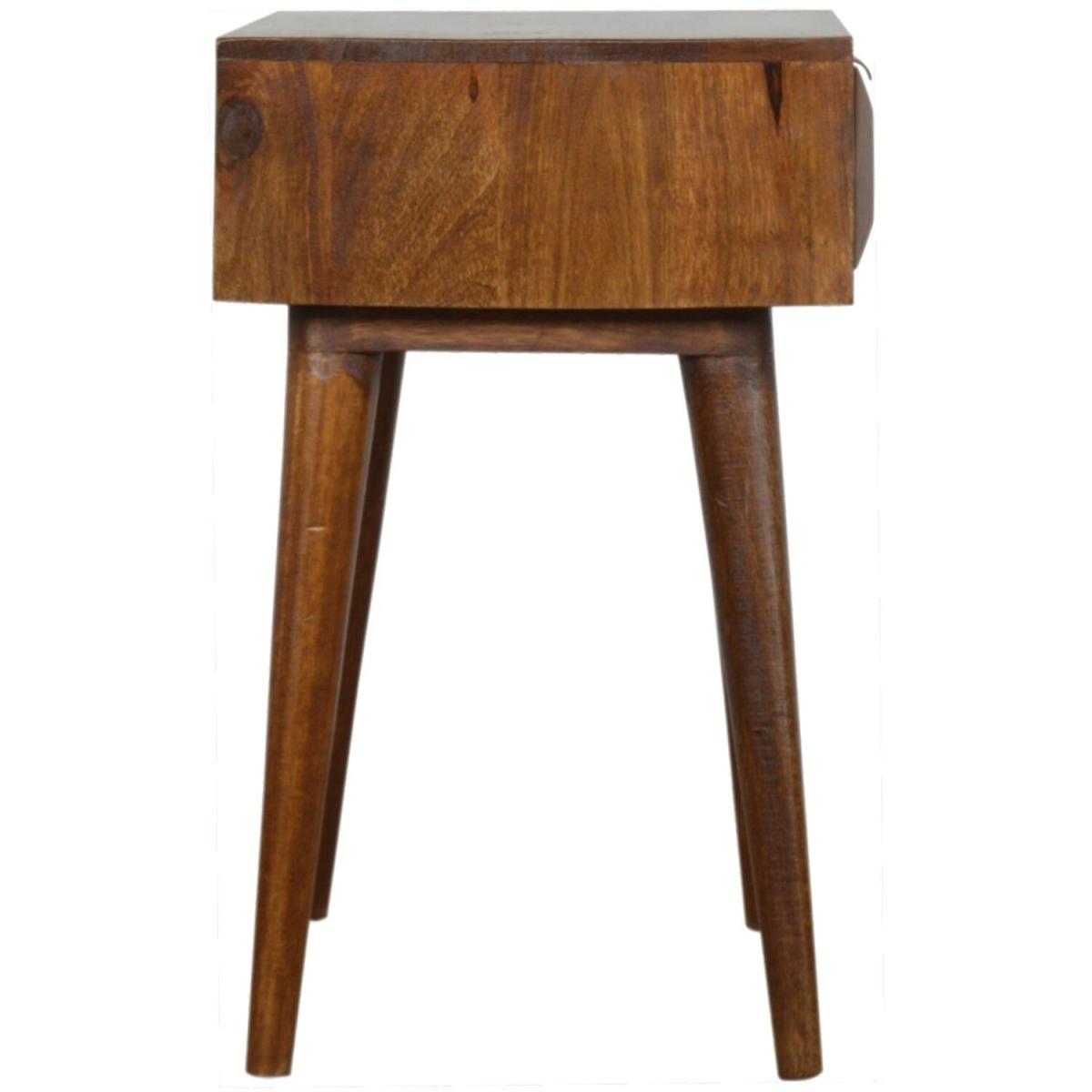 Carved Chestnut Wood Bedside Table - Chesnut Finish