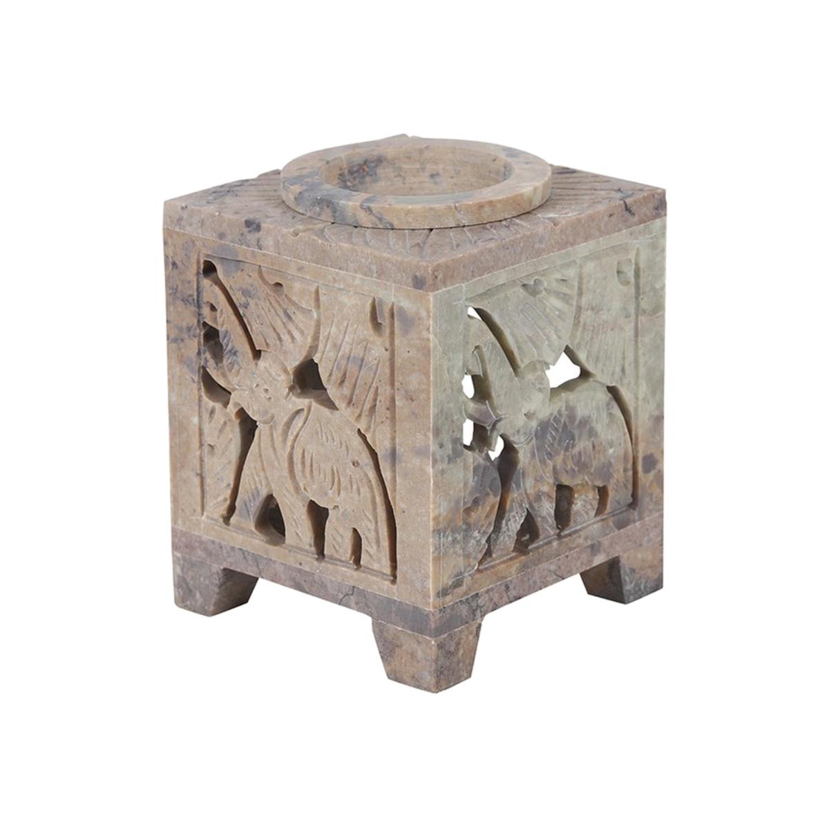 Carved Elephant Soapstone Oil Burner Relaxing Home Decor - Natural