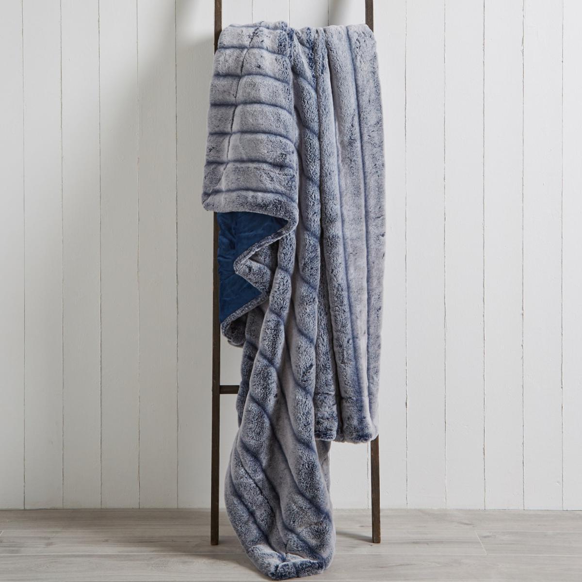 Carved Faux Fur 150cm x 200cm Throw Navy Blue