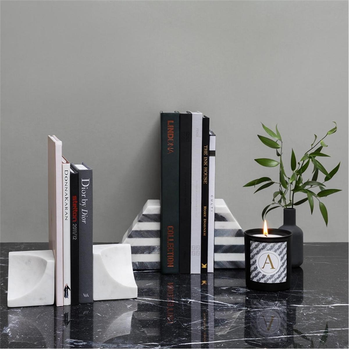 I love these marble bookends because of their minimalist yet sophisticated look, making them versatile for both modern and classic interiors. The subtle veining and clean lines allow them to work well on shelves, desks, or side tables, adding an element of texture and elegance without overpowering other decor. For styling, try pairing them with neutral-toned books or accessories to highlight the marble’s natural beauty, or use them as a statement piece in a more eclectic setting. They are practical for keeping your books organised while offering a timeless aesthetic that easily complements different colour schemes and interior styles.