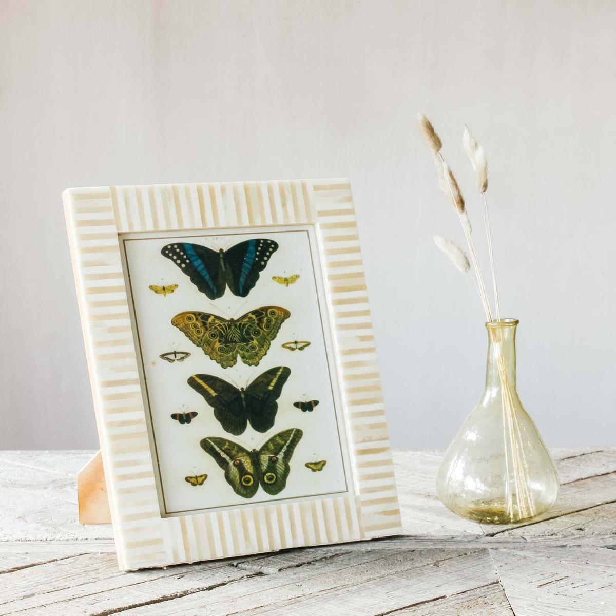 I love this white bone frame for its clean, crisp look that easily complements both modern and rustic interiors. Its carved striped detail adds texture and interest without overwhelming the display. It works well in neutral or light-toned schemes, especially when paired with natural materials or vintage pieces. For practical styling, try grouping it with other frames of different sizes and finishes to create a gallery wall, or place it on a sideboard or shelf alongside minimal décor. It’s perfect for showcasing colourful or monochrome photographs alike, adding a fresh touch to any room.