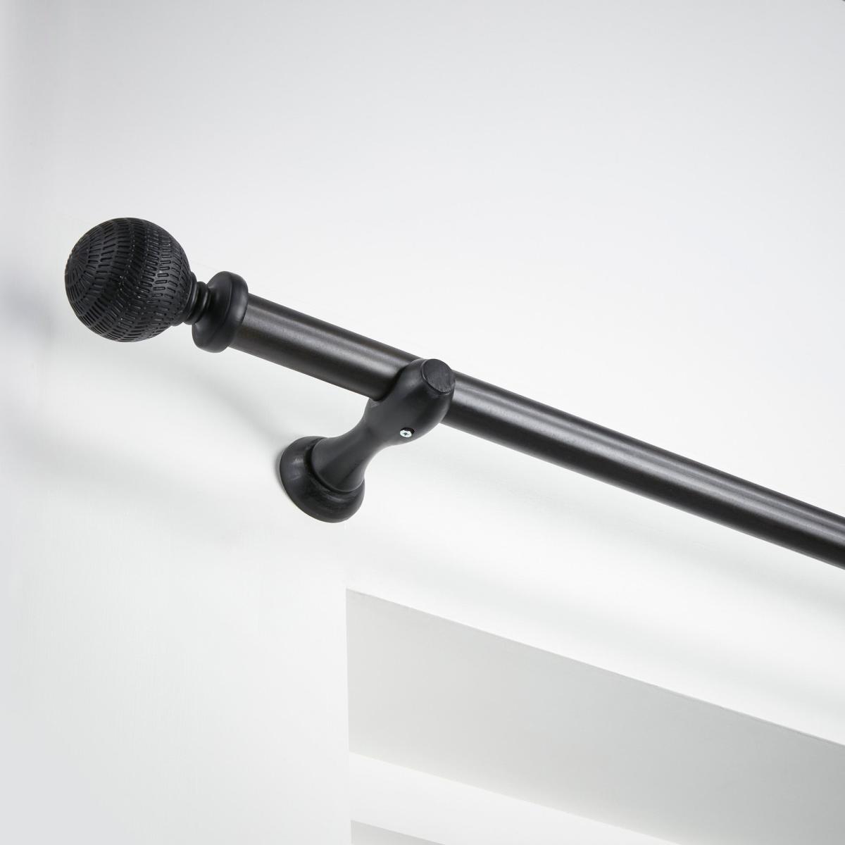 Styled in a matt black wood finish, this wooden curtain pole features stylish ball finials with carved details and a standard 28mm diameter for greater versatility. This pole can easily be wiped clean and is perfect to complement a variety of classic and modern decors. Available in a wide selection of sizes with the option to cut to size if required, this wooden curtain pole comes complete with brackets, fixings and rings included. The quantity of rings supplied is based on the industry standard of 1 ring per every 10cm. Please note: the pole length stated does not include the finials. Please allow up to an additional 10cm to the pole length to accommodate the finials. Disclaimer: This pole can be cut to size and the finials can be removed.