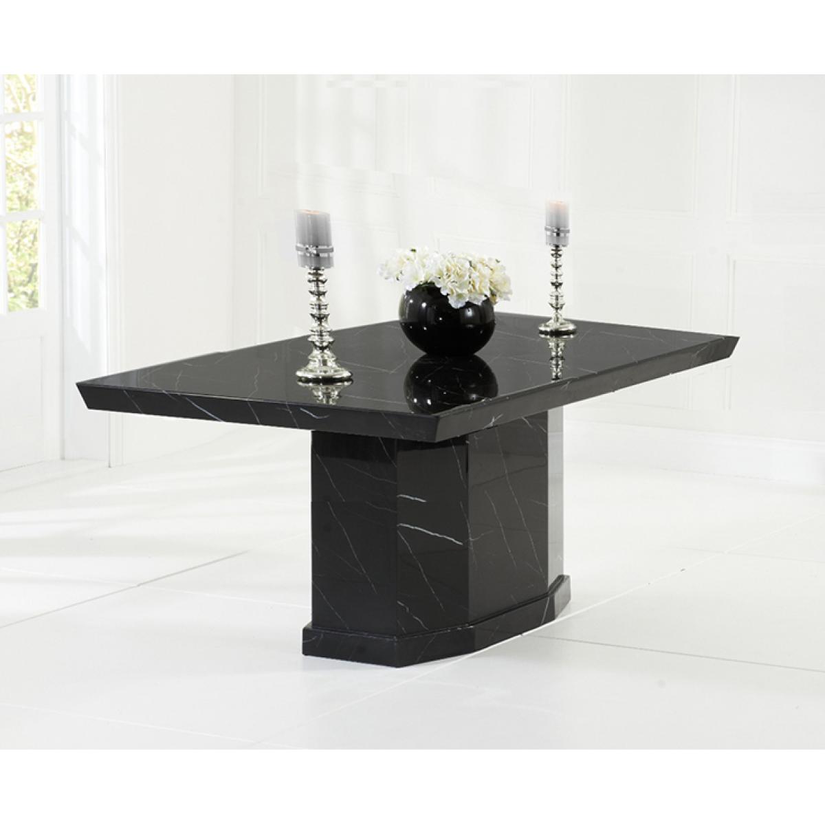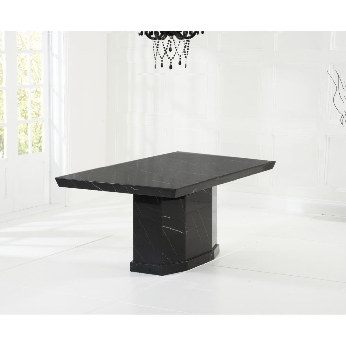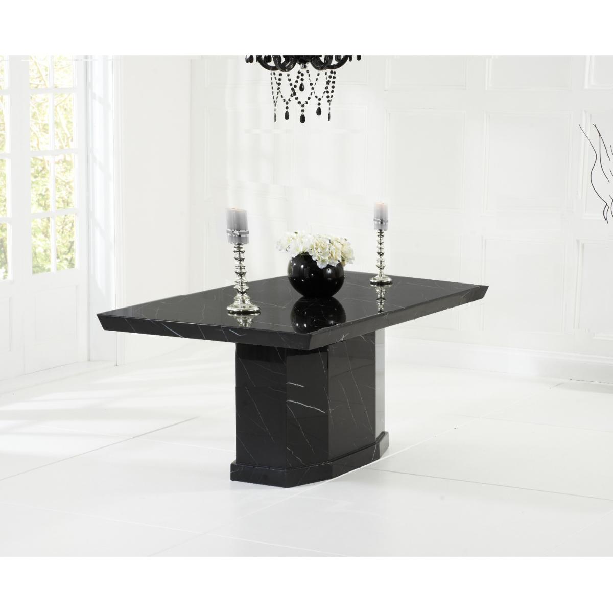 Carvelle 160cm Black Pedestal Marble Table With 4 Black Novara Chairs