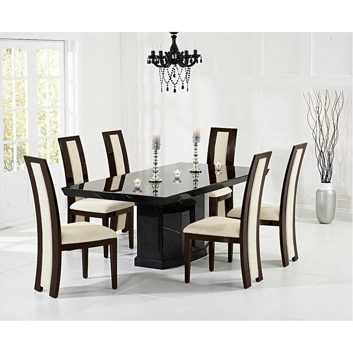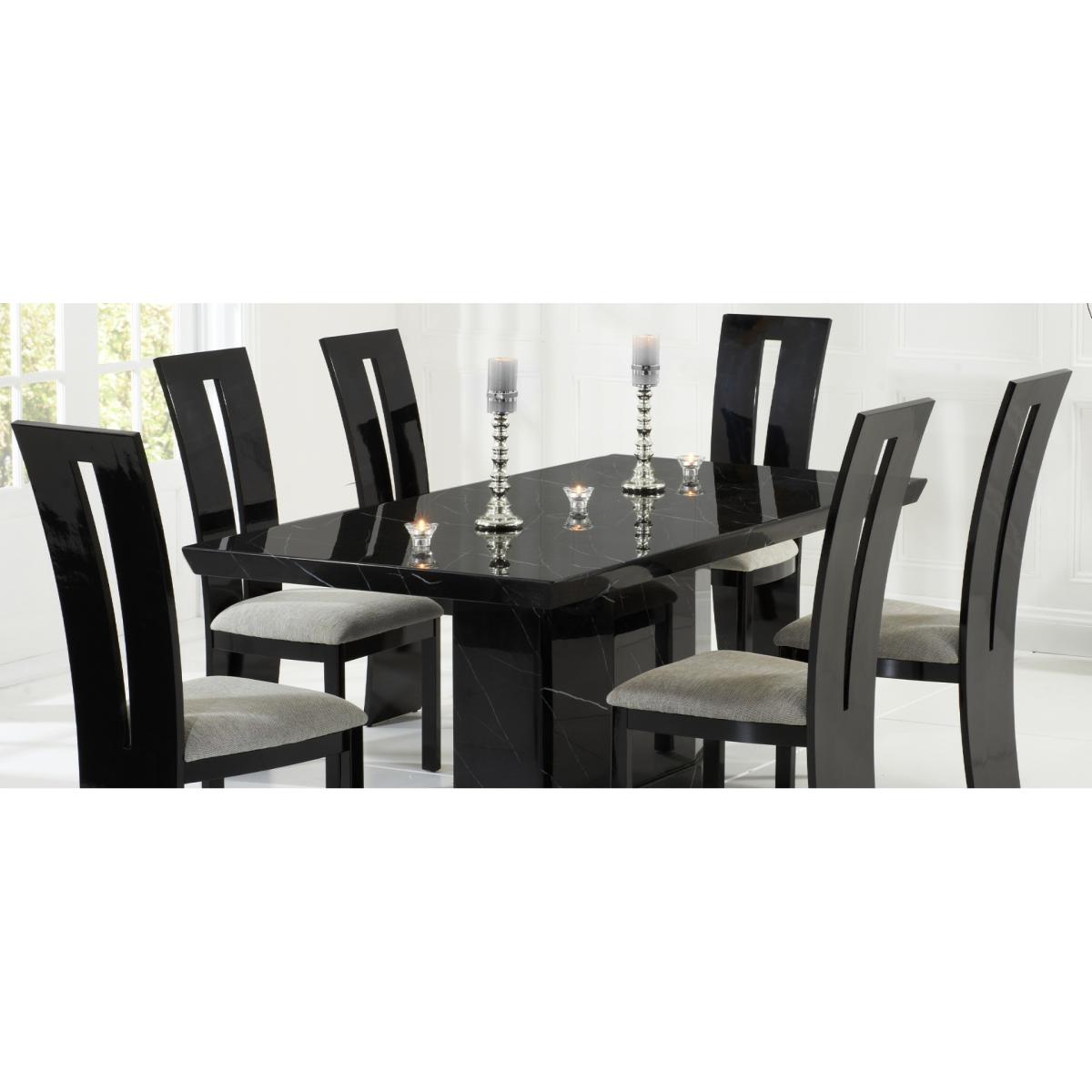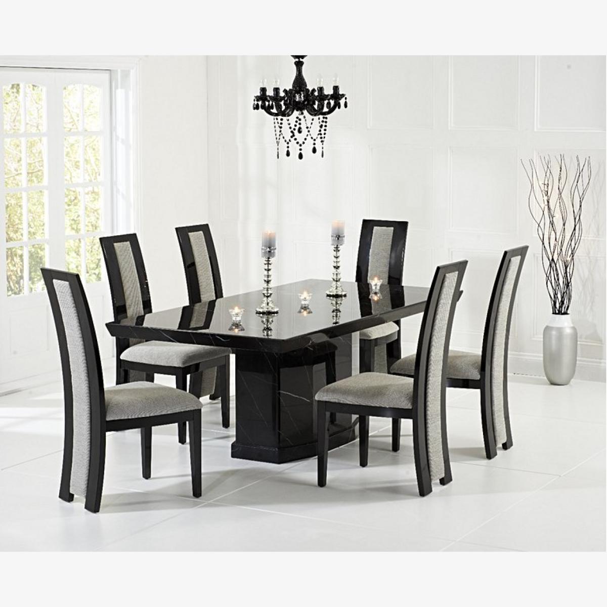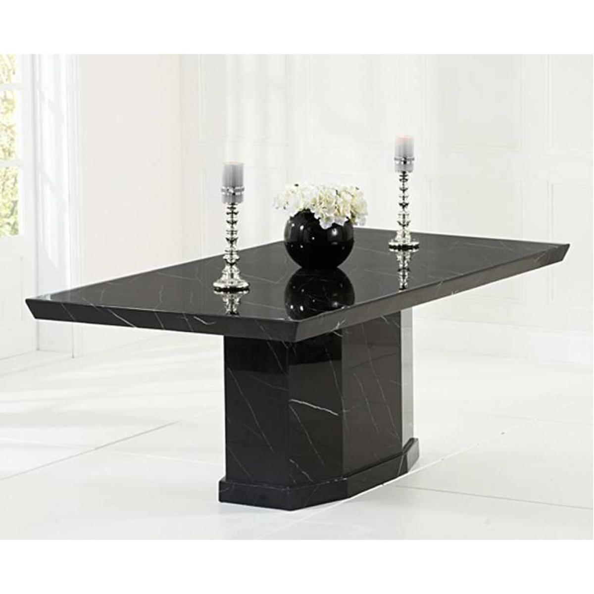 Carvelle 160cm Black Pedestal Marble Table With 4 Black Novara Chairs