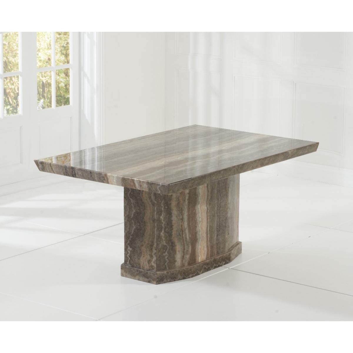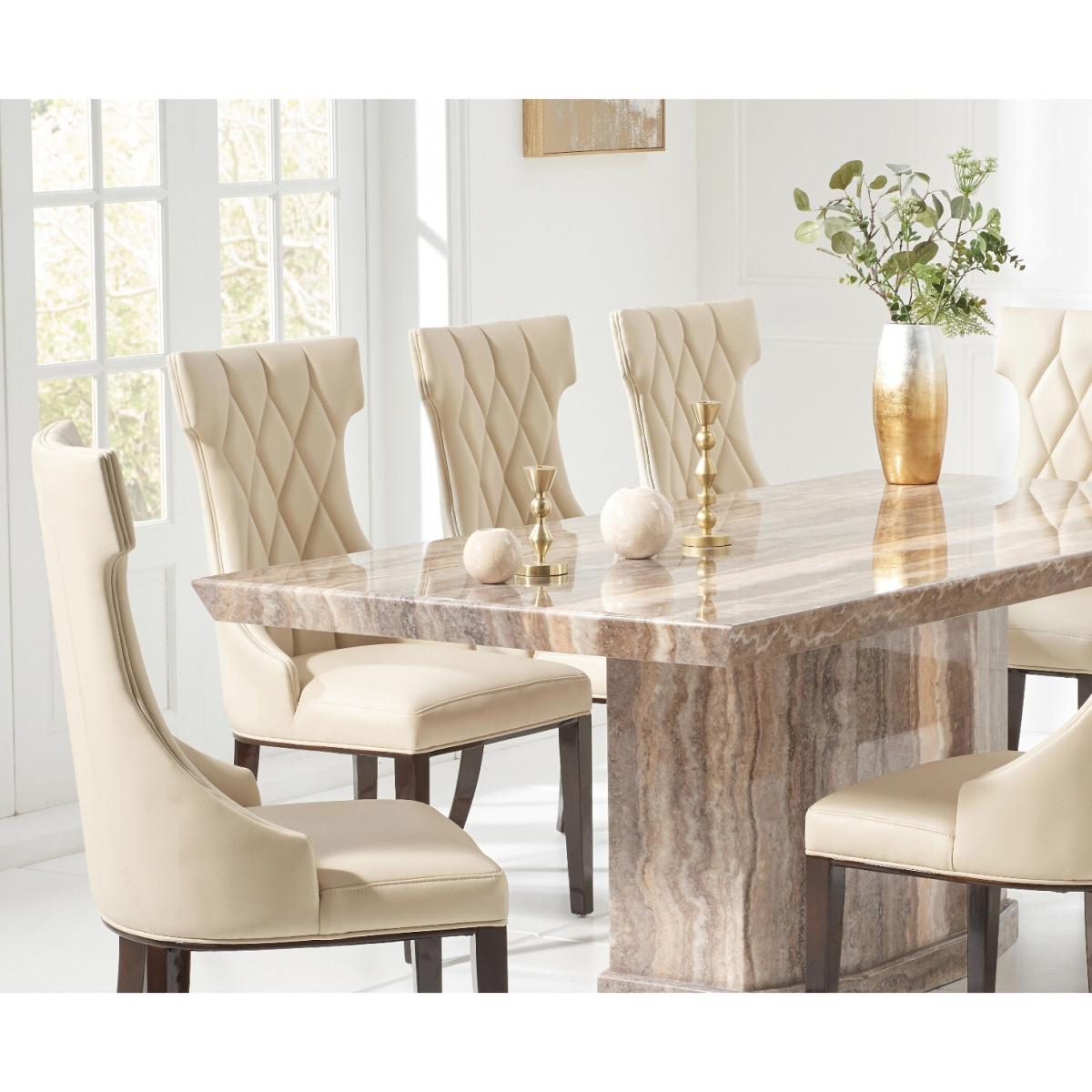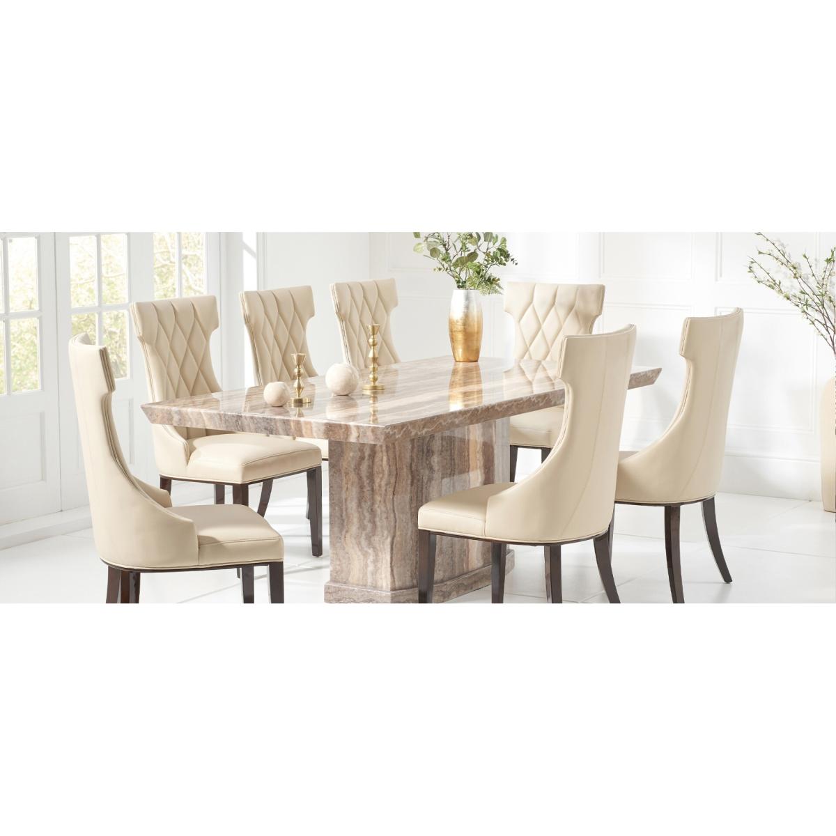 The Carvelle 160cm brown marble dining table pair perfectly with the Sophia dining chairs