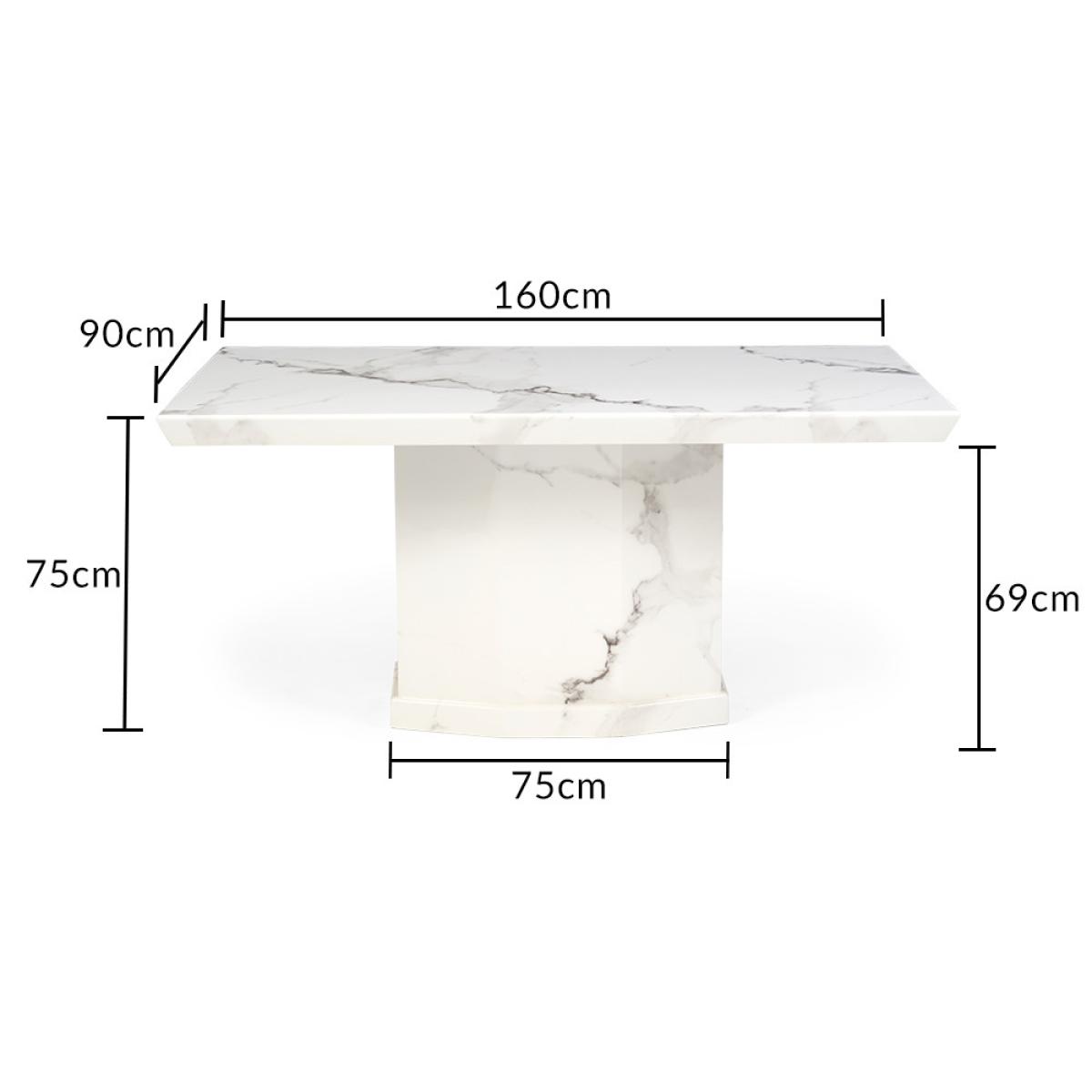 Carvelle 160cm White Pedestal Marble Dining Table