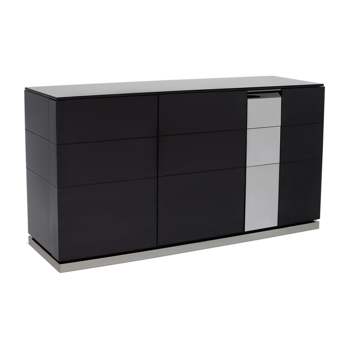 Perfect for entertaining guests, the Carvelle 3 Door Buffet Cabinet oozes sophistication as well as practicality. Finished in high gloss and a dark colour scheme, this piece will add a moody luxurious feel to your dining space or kitchen.