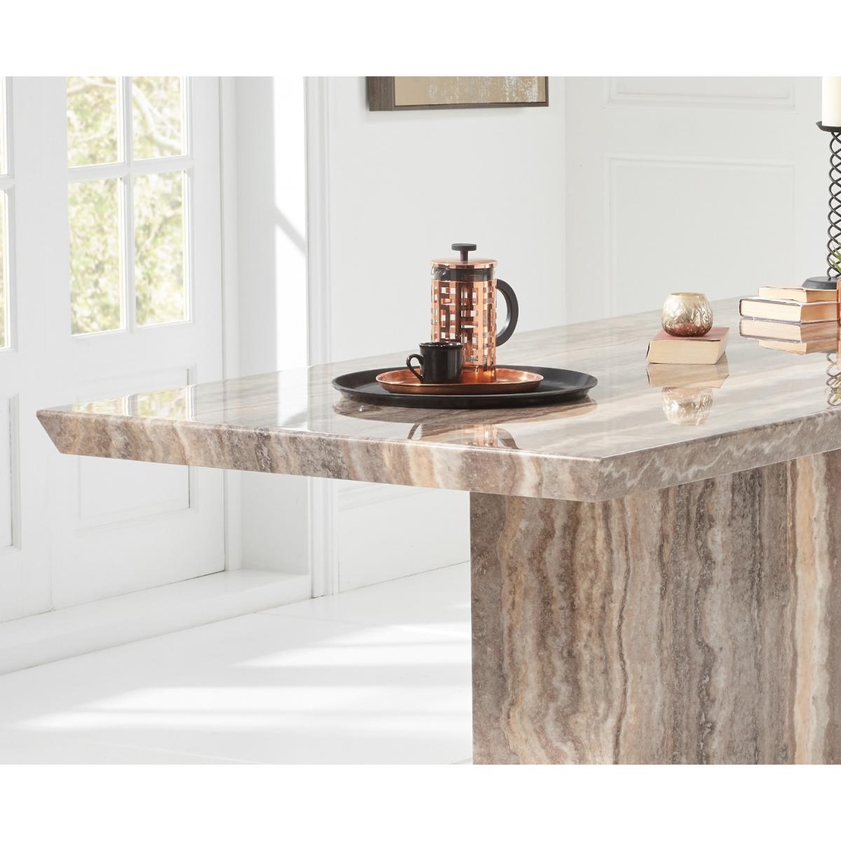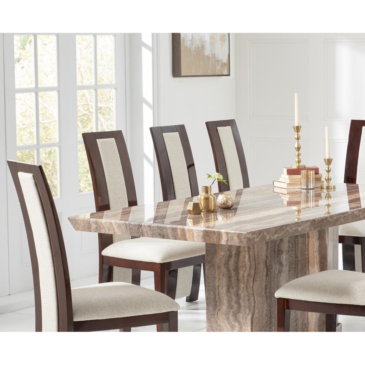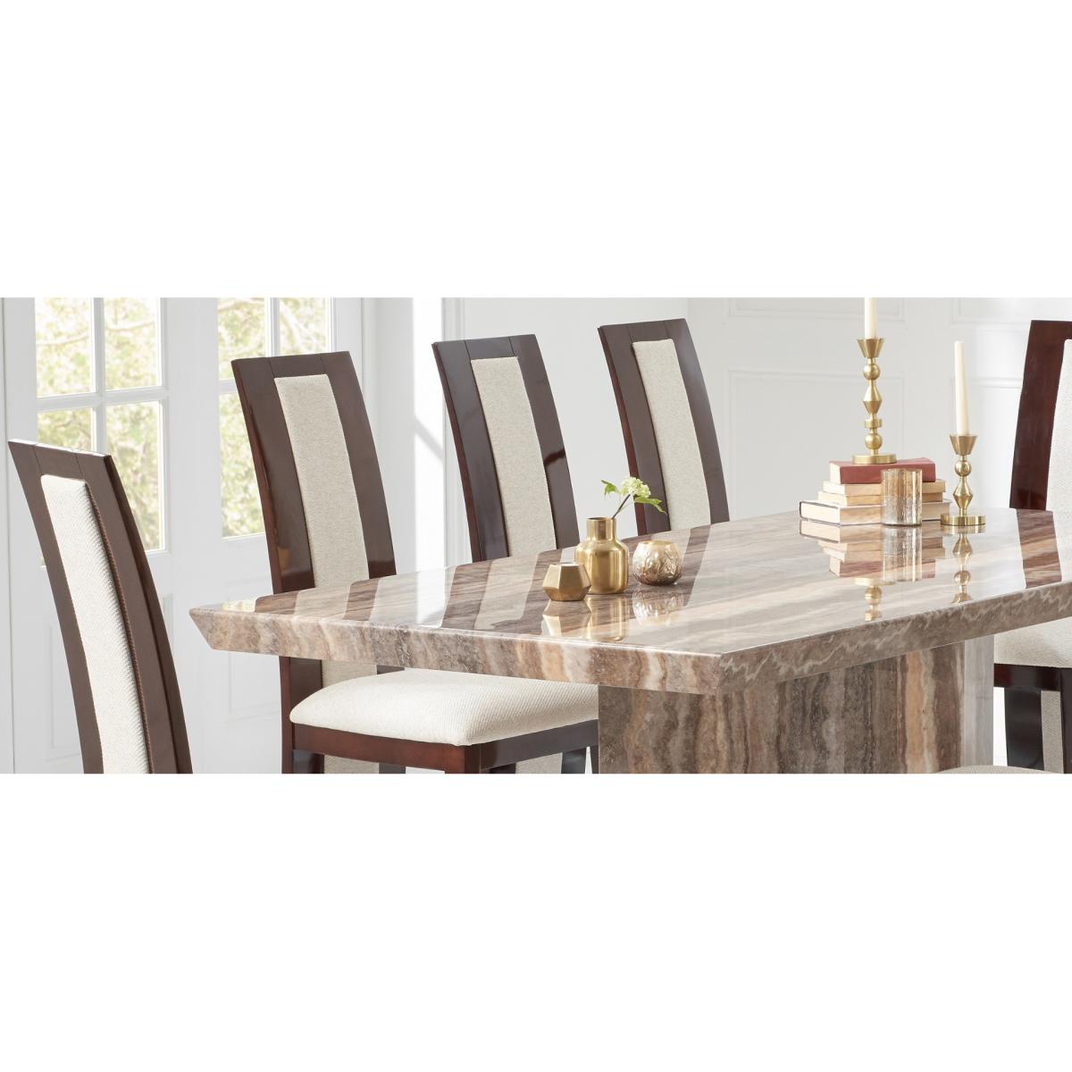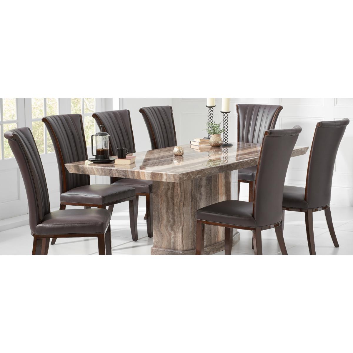 Carvelle 200cm Brown Pedestal Marble Dining Table With 6 Brown Novara Chairs