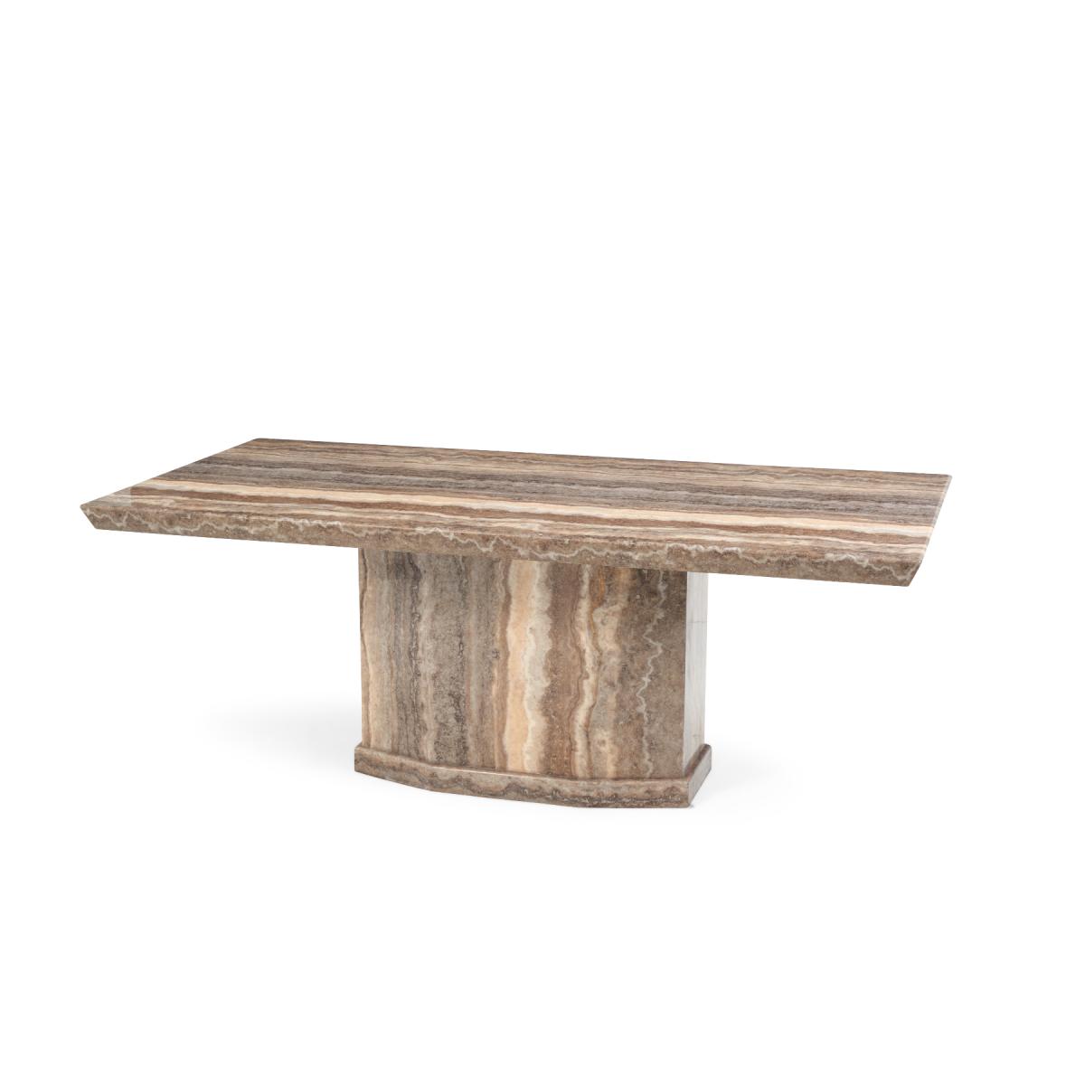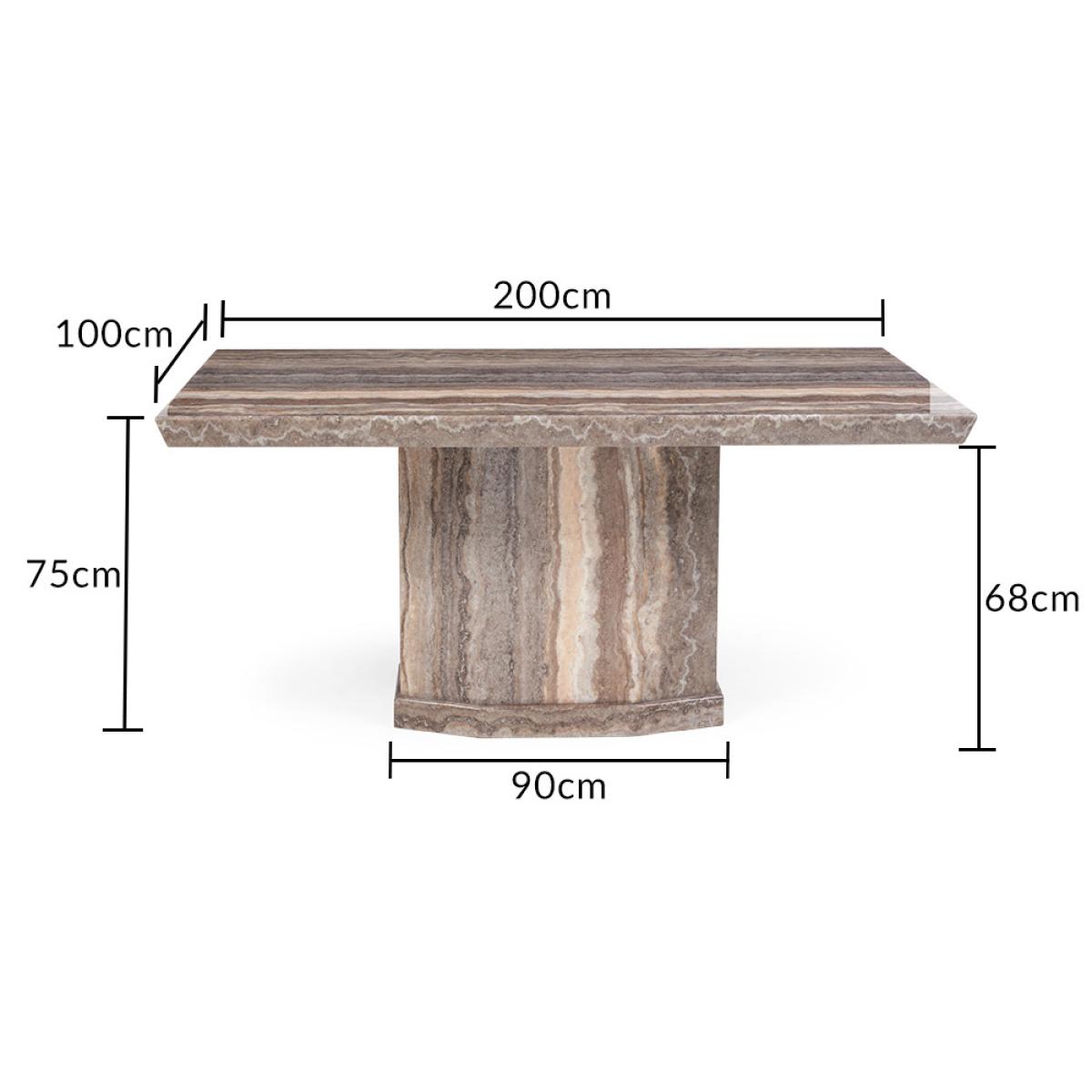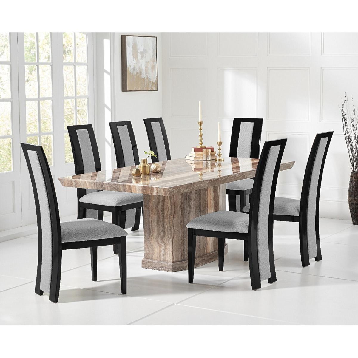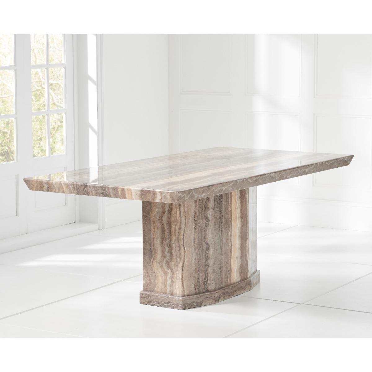 Carvelle 200cm Brown Pedestal Marble Dining Table With 6 Brown Novara Chairs