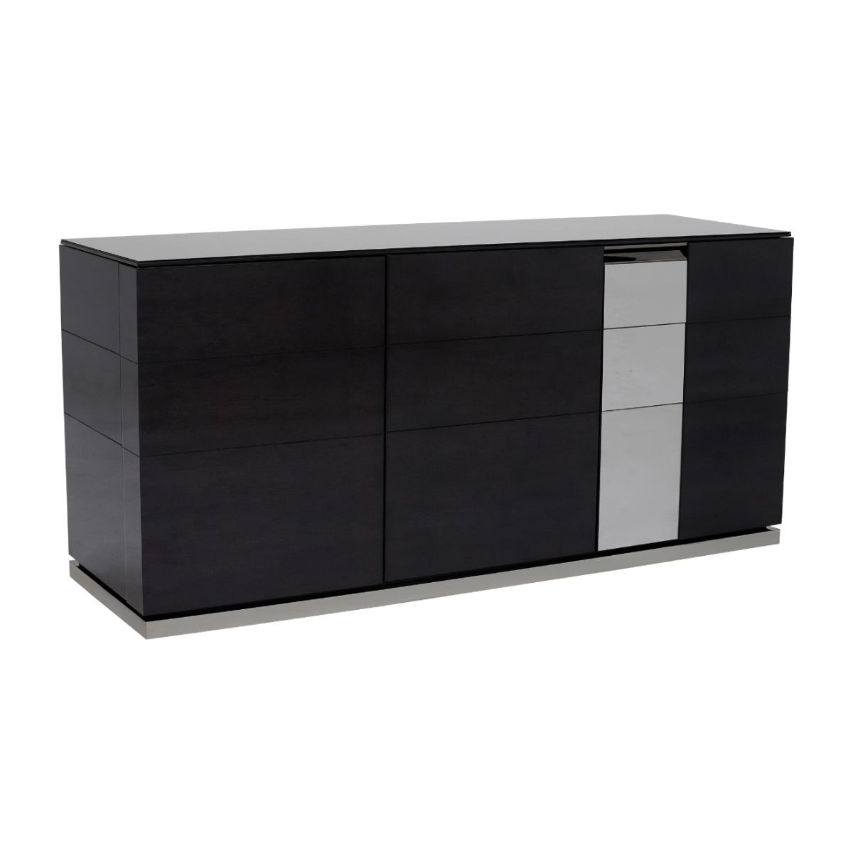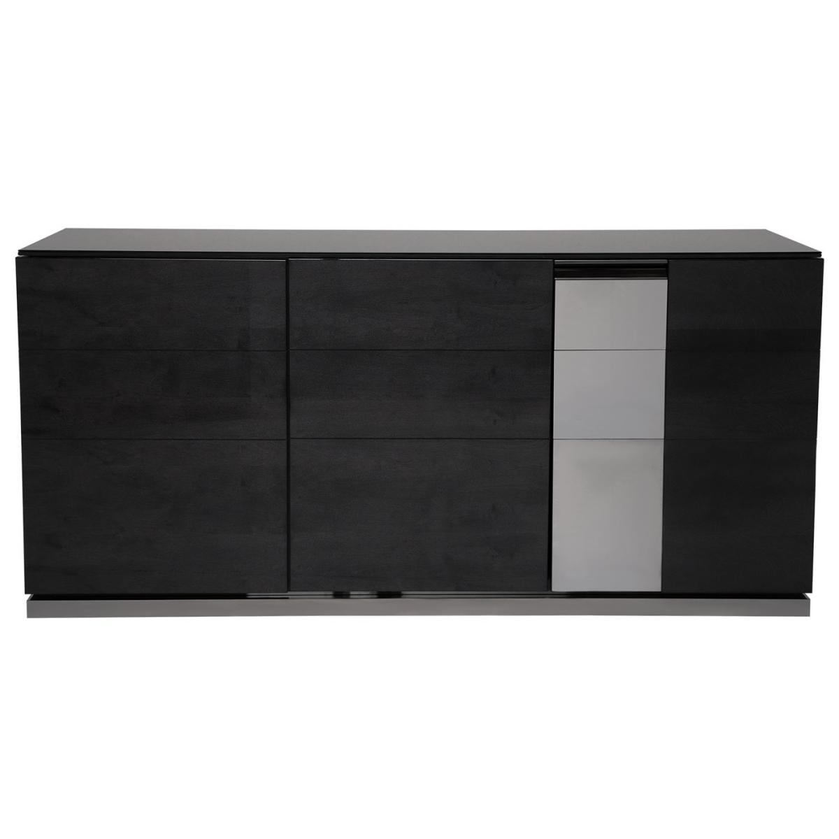 Design. Perfect for entertaining guests, the Carvelle 3 Door Buffet Cabinet oozes sophistication as well as practicality. Finished in high glossand a darkcolourscheme, this piece will add a moody luxurious feel to your dining space or kitchen.