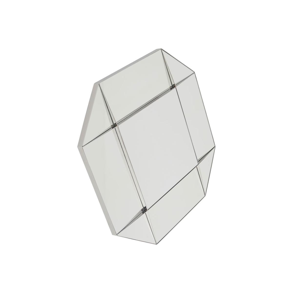 Facetted mirror with metal frame.