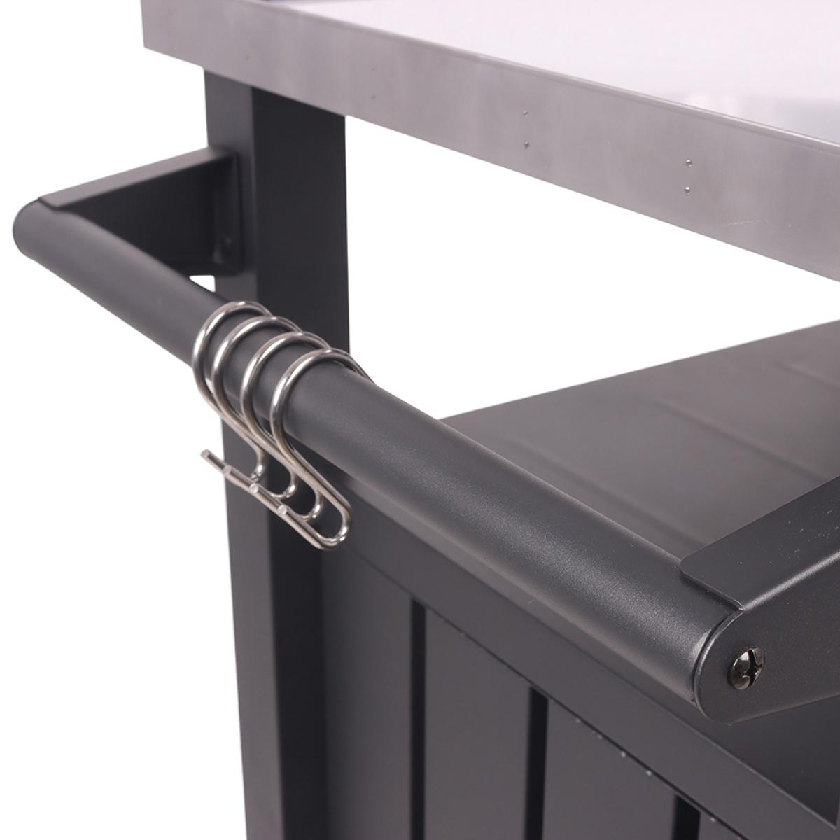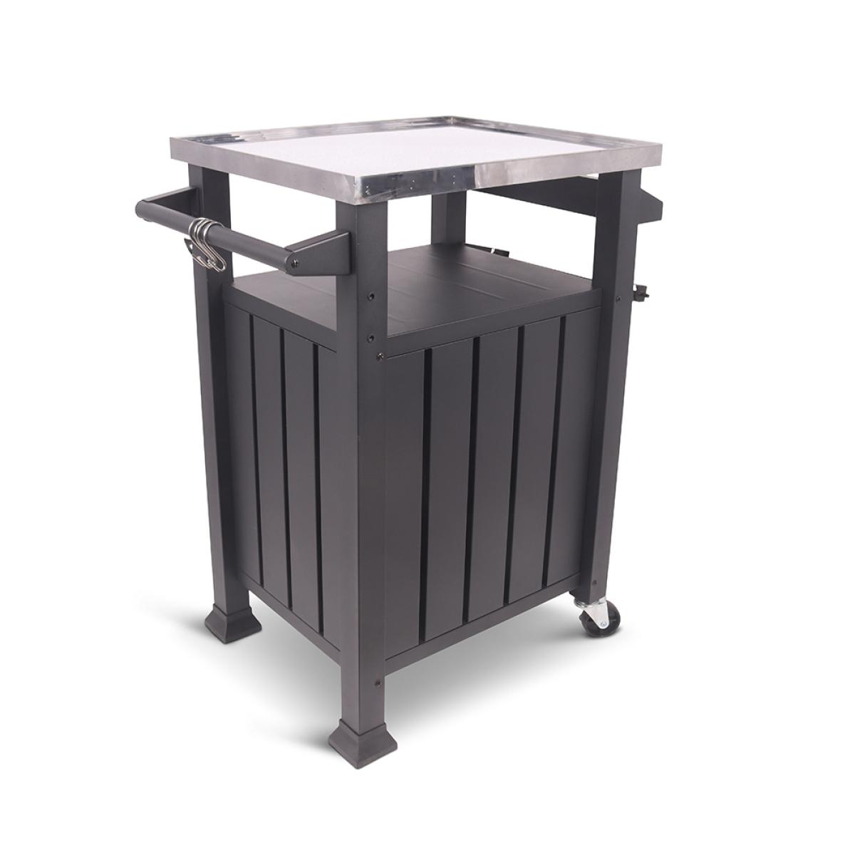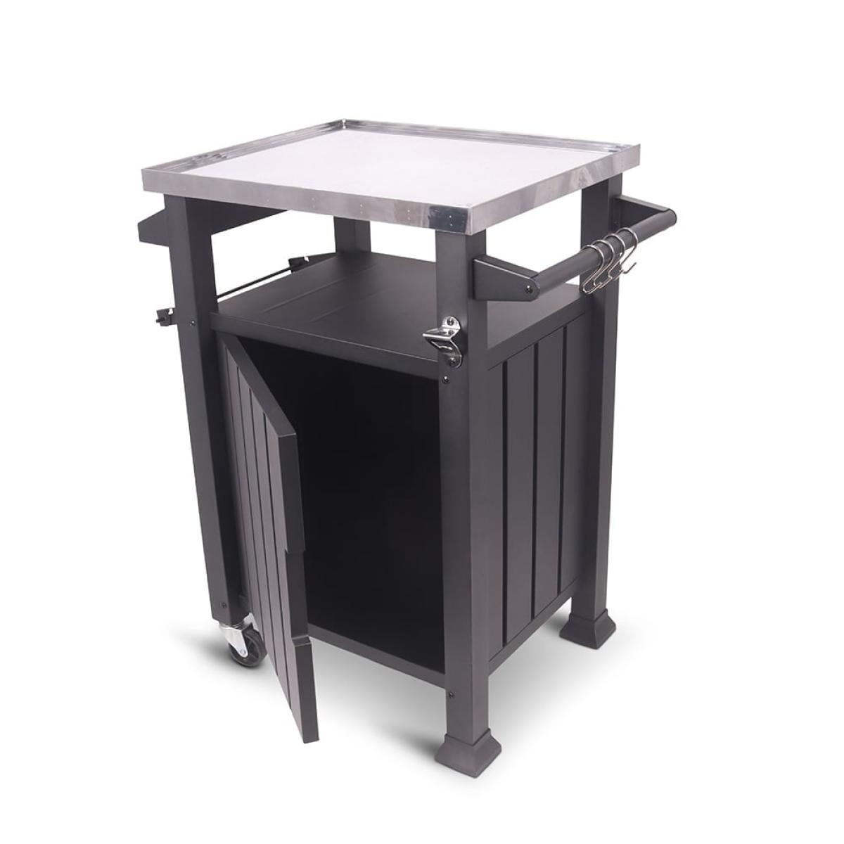 Make the most of your tabletop space with this specially designed pizza oven storage trolley. In graphite grey aluminium with a stainless steel top, this sturdy pizza oven table will give your garden the outside kitchen look. The Casa Mia pizza trolley has space for either a 12" or 16" Casa Mia pizza oven and is equipped with tool hooks, condiment rack, paper towel holder and bottle opener. It's super practical, with wheels to help you move it from one side of your patio to the other, and a large storage cupboard underneath to hide away the gas bottle.