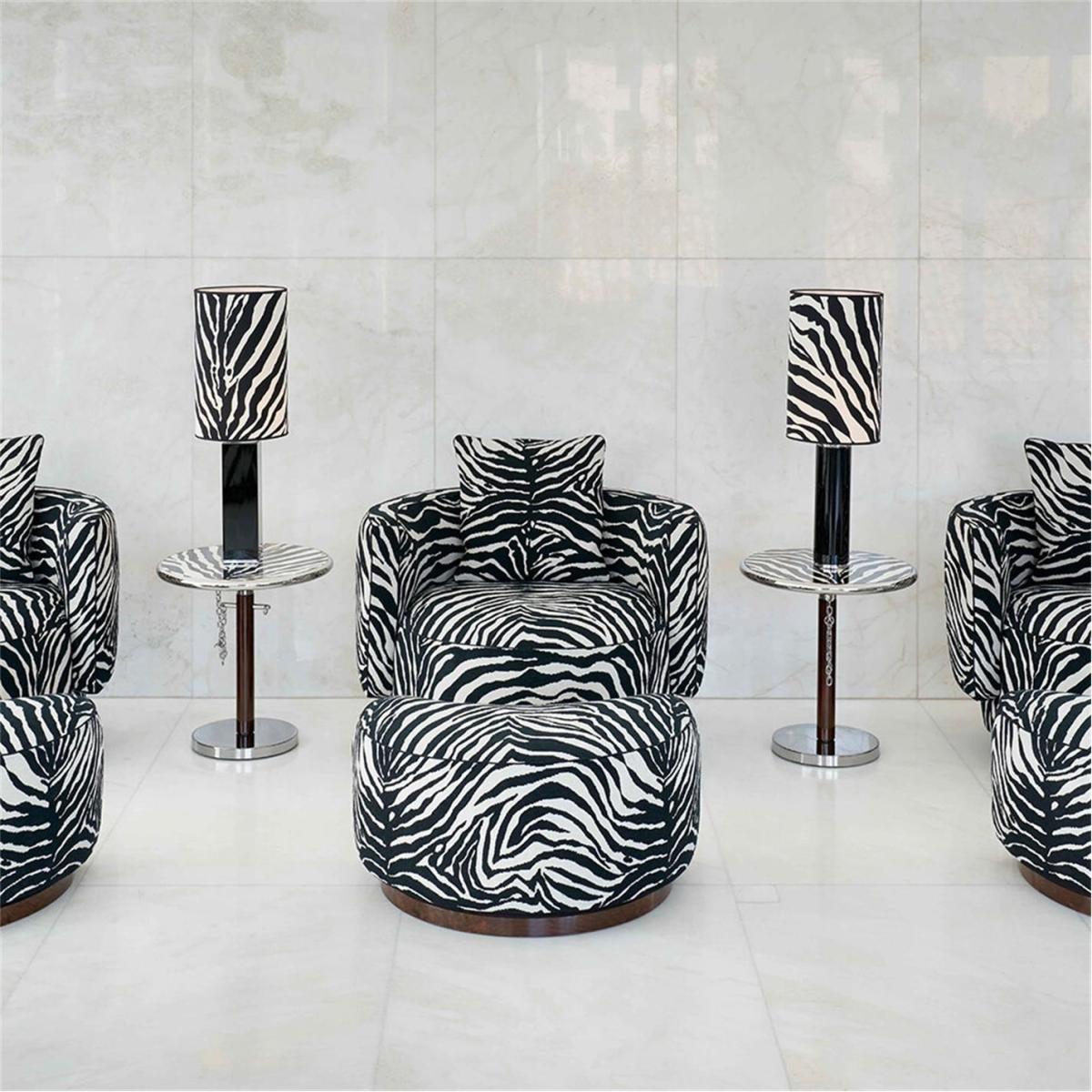 I love this zebra-print footstool for adding a bold, graphic element to a variety of interiors. It works particularly well in eclectic, modern, or boho spaces where statement pieces are welcomed, and it can also bring a touch of personality to minimalist settings. Its versatile shape makes it practical as both an extra seat and a footrest, while the monochrome pattern ensures it can be styled alongside a wide colour palette. For styling tips, consider pairing it with neutral sofas to let the print stand out, or use it as a playful accent in a room with more subdued furnishings. Its compact size makes it easy to manoeuvre, making it a flexible addition to both living rooms and bedrooms alike.