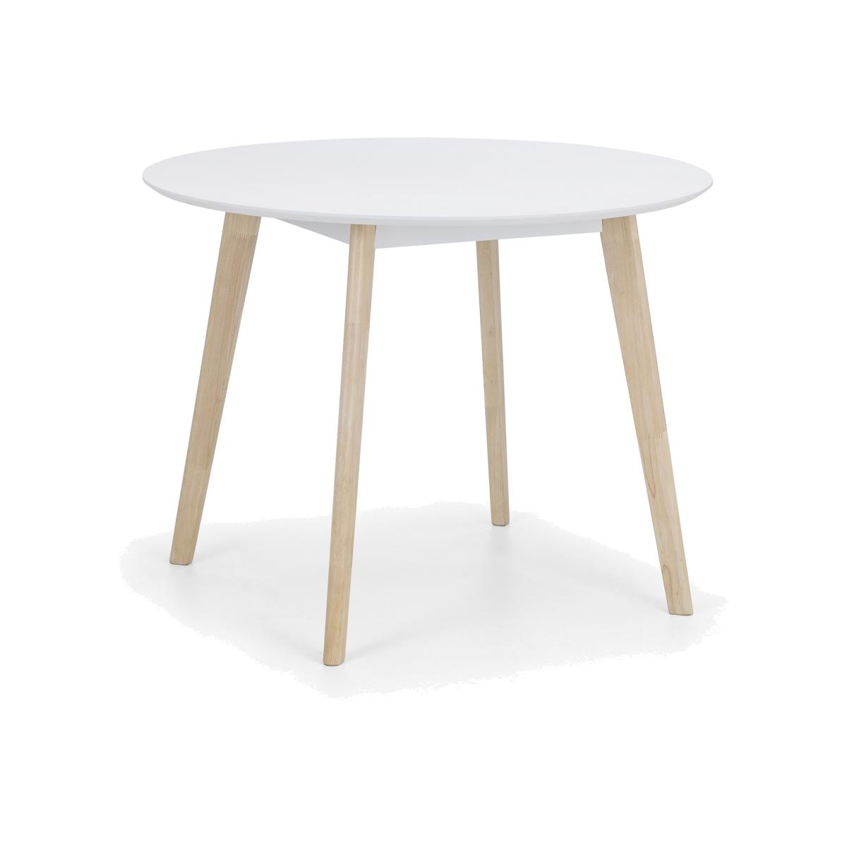 I love how the white top and pale oak legs keep the look light and adaptable - it slots straight into Scandi, contemporary or even minimalist interiors and helps small dining nooks feel more spacious. The round shape encourages easy flow around the table and works well with four chairs or a couple of stools. For styling, layer it over a neutral jute or sisal rug and choose earthenware plates in soft, muted tones. A low pot of greenery makes a simple centrepiece that doesn’t block conversation, and mixing in chairs with metal or coloured legs adds a modern twist.
