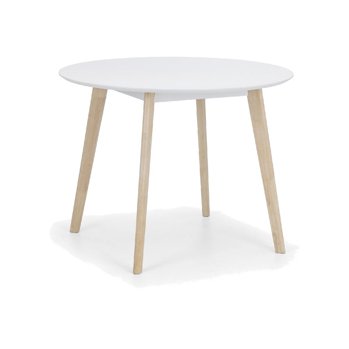 I love this round table and chairs set because of its clean, minimalist design and versatile colour. The white tabletop is perfect for creating a bright, airy dining space and works well in both modern and Scandi-inspired interiors. The wooden legs add warmth and a touch of natural texture, making it easy to style with a variety of chair options or accessories. To style it effectively, consider adding colourful or textured placemats for contrast, or a simple centrepiece like a small vase or bowl to keep the look uncluttered. It’s particularly suited for smaller kitchens or dining rooms where a compact but stylish setup is needed, and the neutral palette ensures it won't overpower your existing décor.