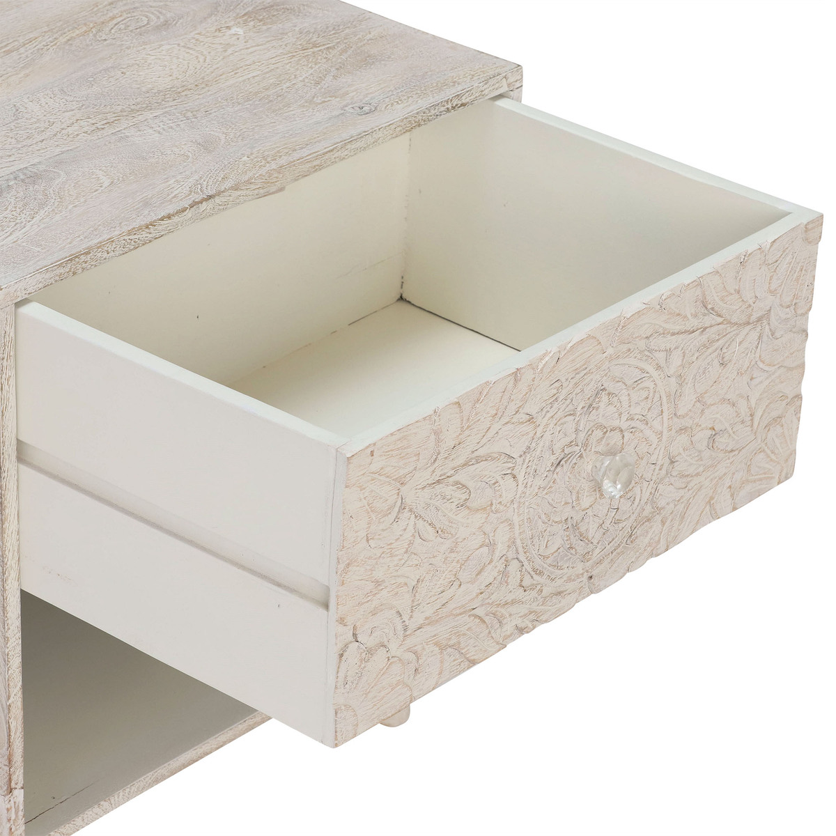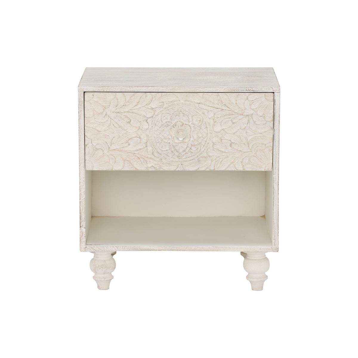 Abeautifullyornate bedside tableproviding space for your essential nighttime and morning items with aonedrawer storage systemand abuilt-incubbyhole.The Casablanca 1 Drawer Bedside is the perfect choice for any rustic or urban home,intricate bohemian design creates a unique look that will turn heads.