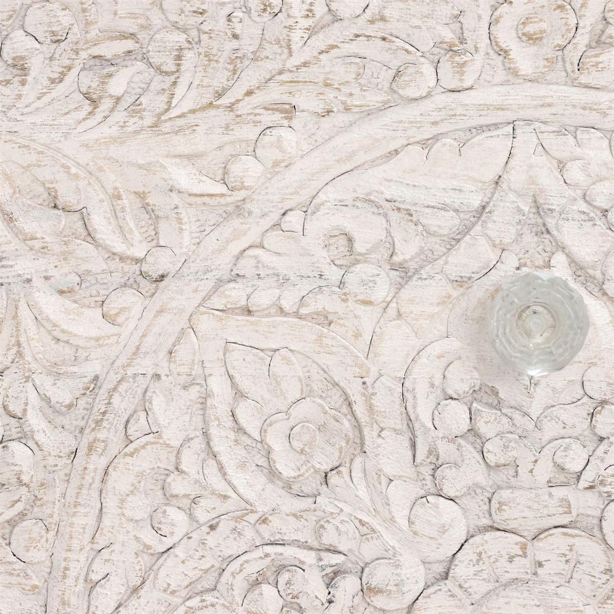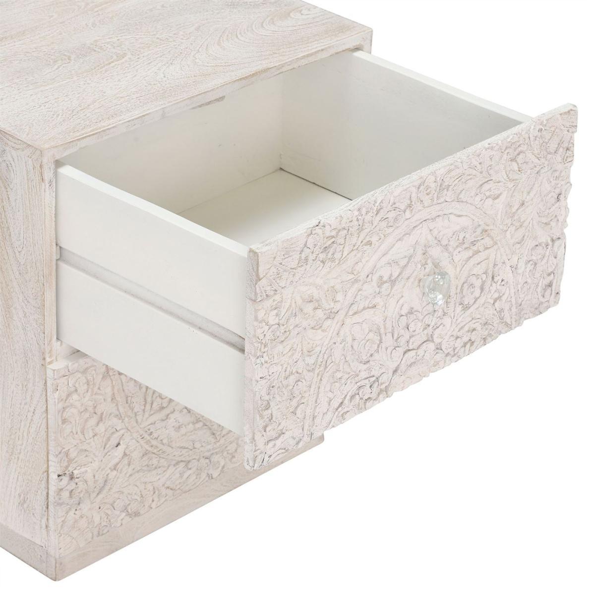 I really like the rustic white finish on this bedside, as it offers a versatile and relaxed look that works well in both traditional and contemporary interiors. Its textured surface and natural tone add visual interest without overwhelming the space, making it a great addition to bedrooms seeking a cosy yet modern feel. When styling around it, consider pairing with soft textiles like linen or cotton bedding, and add layered lighting to accentuate its craftsmanship. Practical tip: its compact size makes it ideal for smaller rooms or next to a low bed, and the two drawers provide convenient storage for essentials, helping keep the space tidy while adding character.