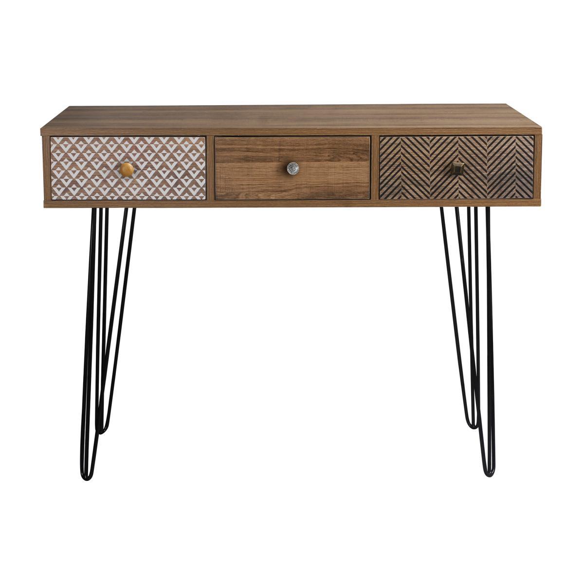 With its unique retro design, the Casablanca desk would be the perfect statement piece for any living or office space. This self-assembly desk features stylish black metal hairpin legs and comes with three spacious drawers, each with different styled fronts and handles. Please note, unfortunately we cannot deliver this item to Northern Ireland or the Channel Islands.