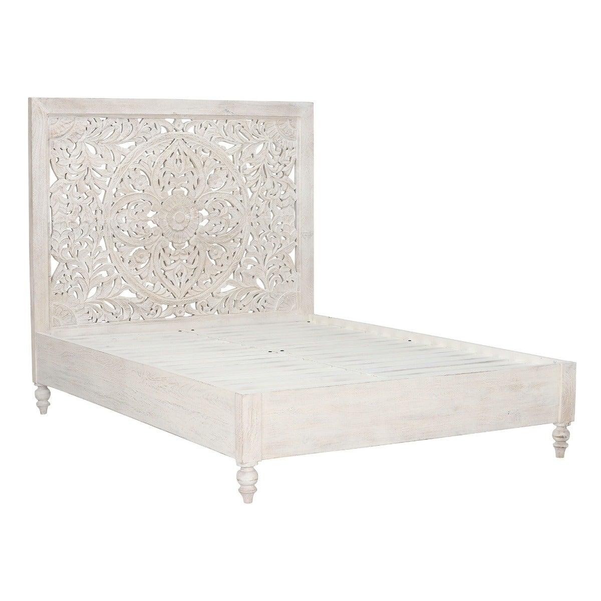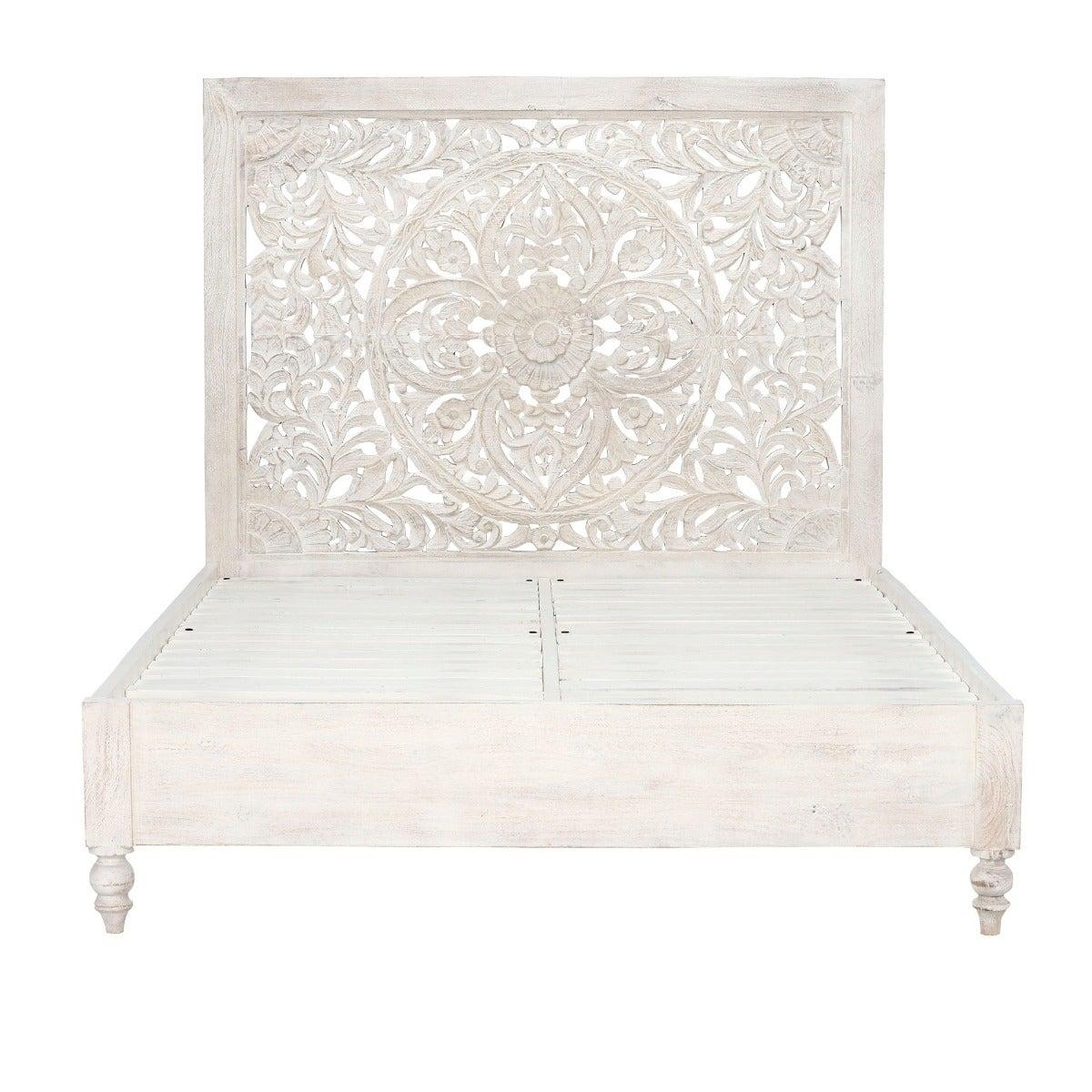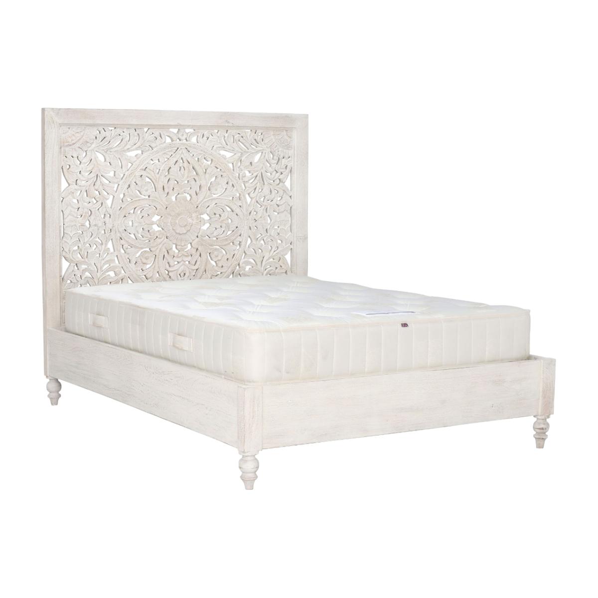 Design. An intricately carved head board sits atop a beautifully white painted frame to create the perfect bohemianparadisein your home. The Casablanca Kind Size Bed will work well in an urban or rustic style home and provides support for any king size mattress of your choosing.