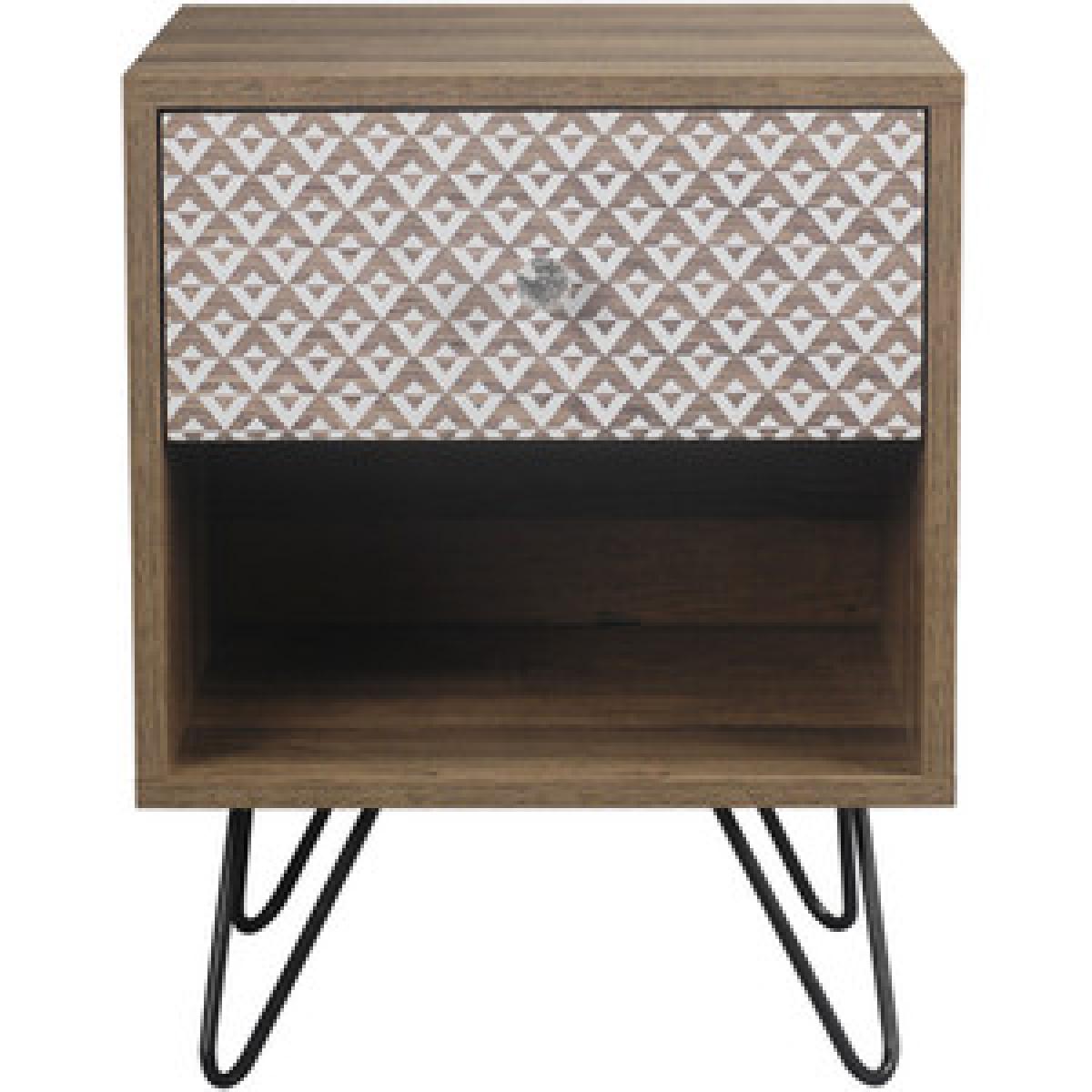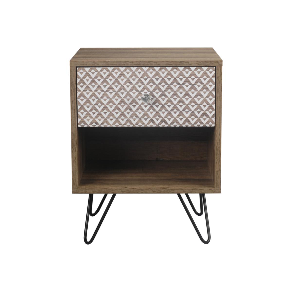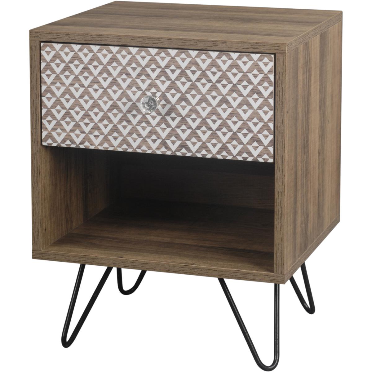 I’m a fan of the Casablanca table for its mix of timber warmth and subtle geometric pattern - the tile-effect drawer front adds interest without overwhelming a scheme. Its slim hairpin legs give it a light, mid-century modern feel that works equally well in Scandi, industrial or boho interiors. Styling tip: use the open cubby to stow charging cables or small baskets, then top with a low-profile table lamp, a stack of coffee-table books and a ceramic potplant. In a bedroom it’ll sit neatly beside neutral linens; in a living room you can balance it with a woven rug and brass-detail accessories.