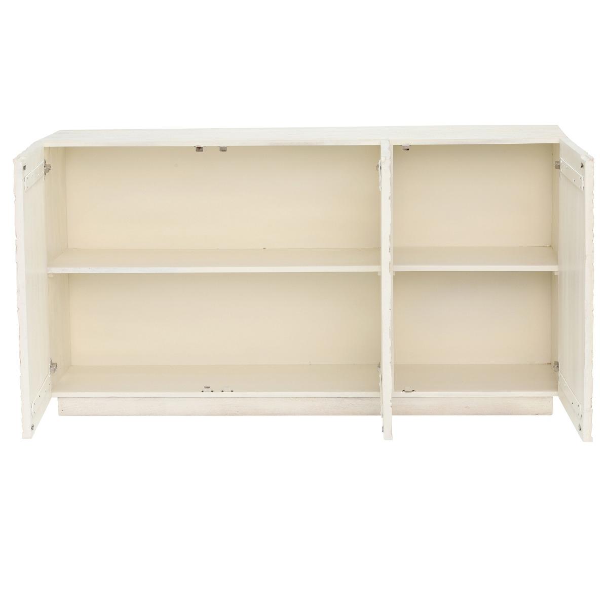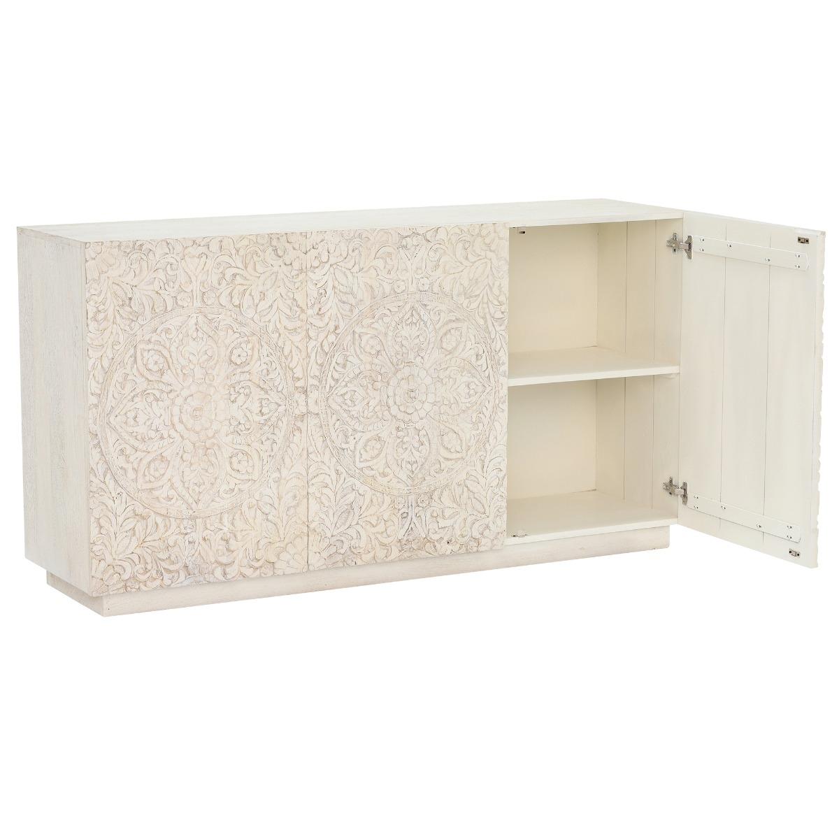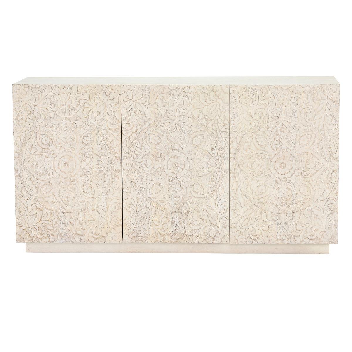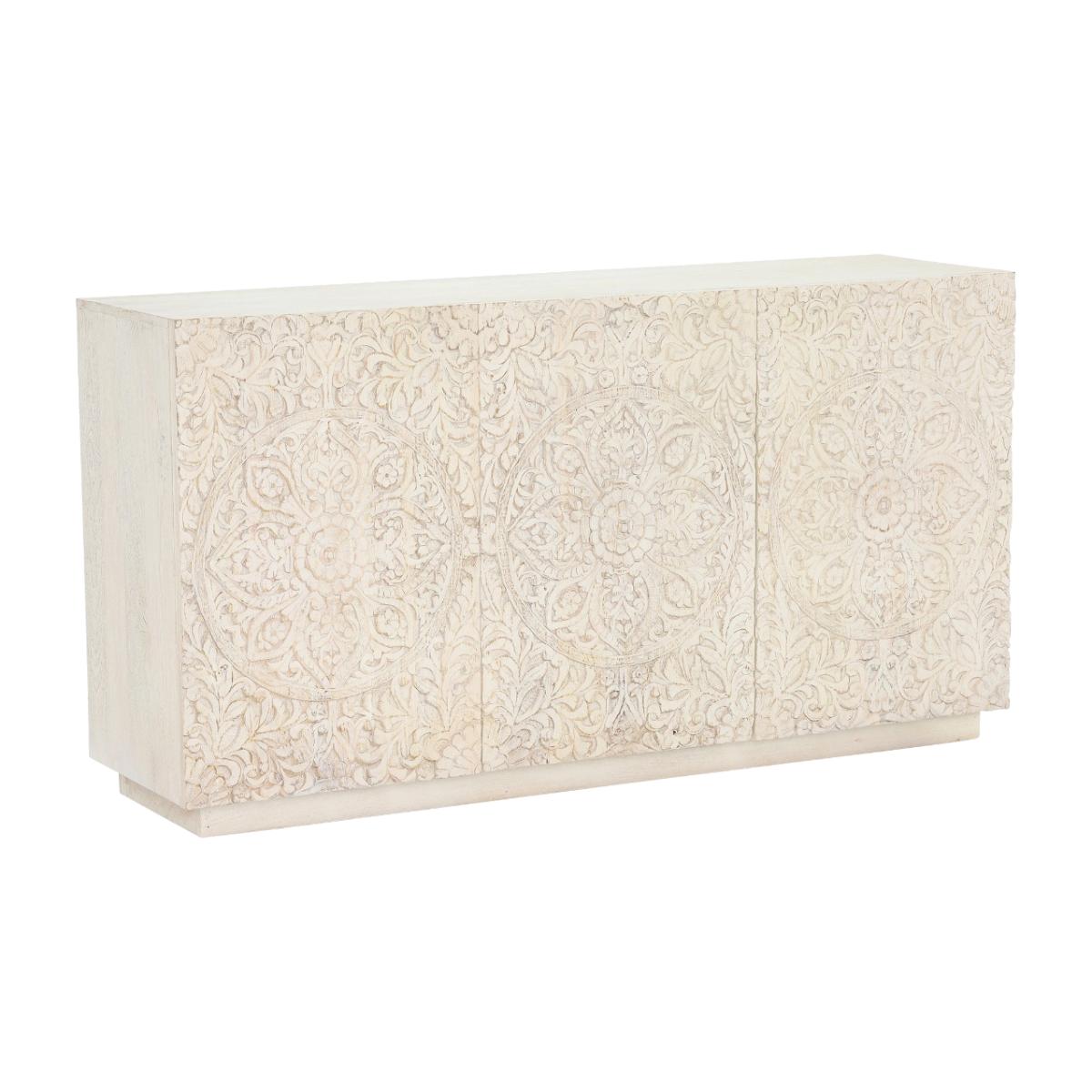 Design. The Casablanca Sideboard merges style and practicality effortlessly. The beautiful off-white shade and stunning intricate design makes the Casablanca sideboard a unique piece; sure to add interest to your living space. Upon opening up the subtle doors, you will find plenty of shelf space to hide away items and keep your room tidy.