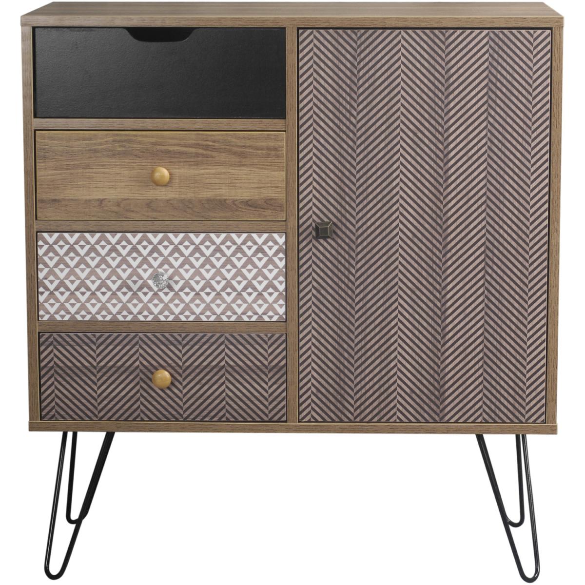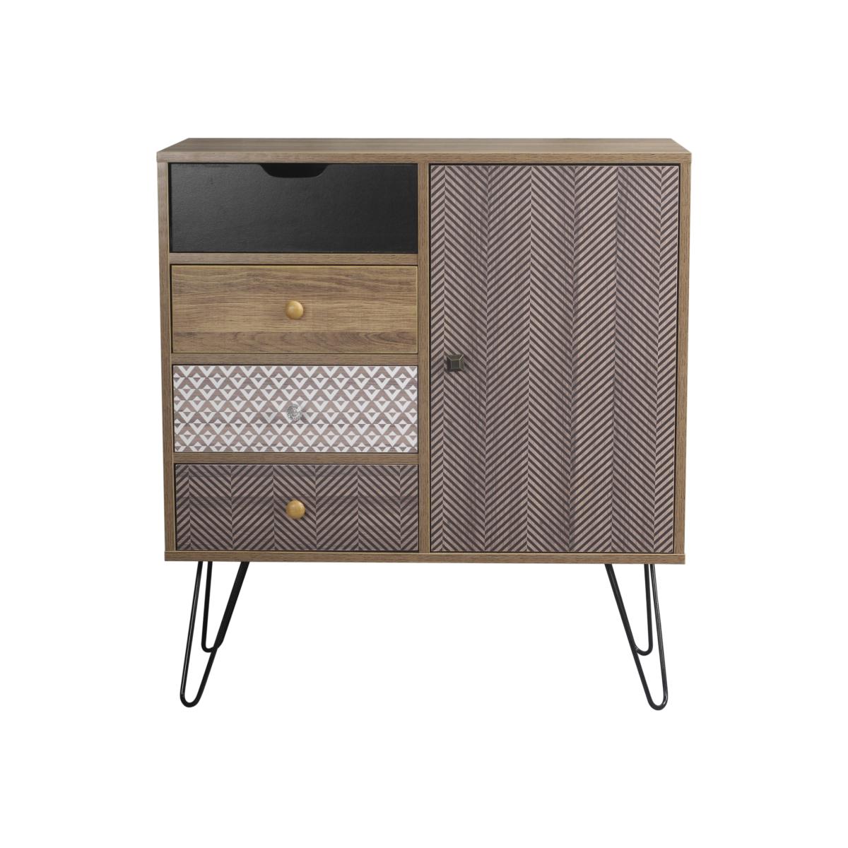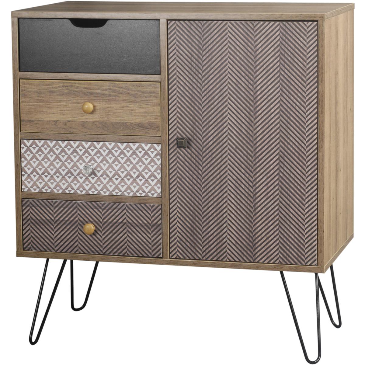 The Casablanca Sideboard stands on black wired legs and contains three small drawers, a cupboard and one shelf. In a gorgeous design, it is the perfect storage unit for any room in your home or apartment. The Sideboard is constructed from particle board with a wood effect finish. The Casablanca consists of foils and prints to create a quirky look to a traditional piece of furniture which adds a contemporary feel to all interior. The classic colours used in the effects means that even though the obscure design will make a stylish statement in your home, the Casablanca will always work and will never fail to be missed by all your guests!