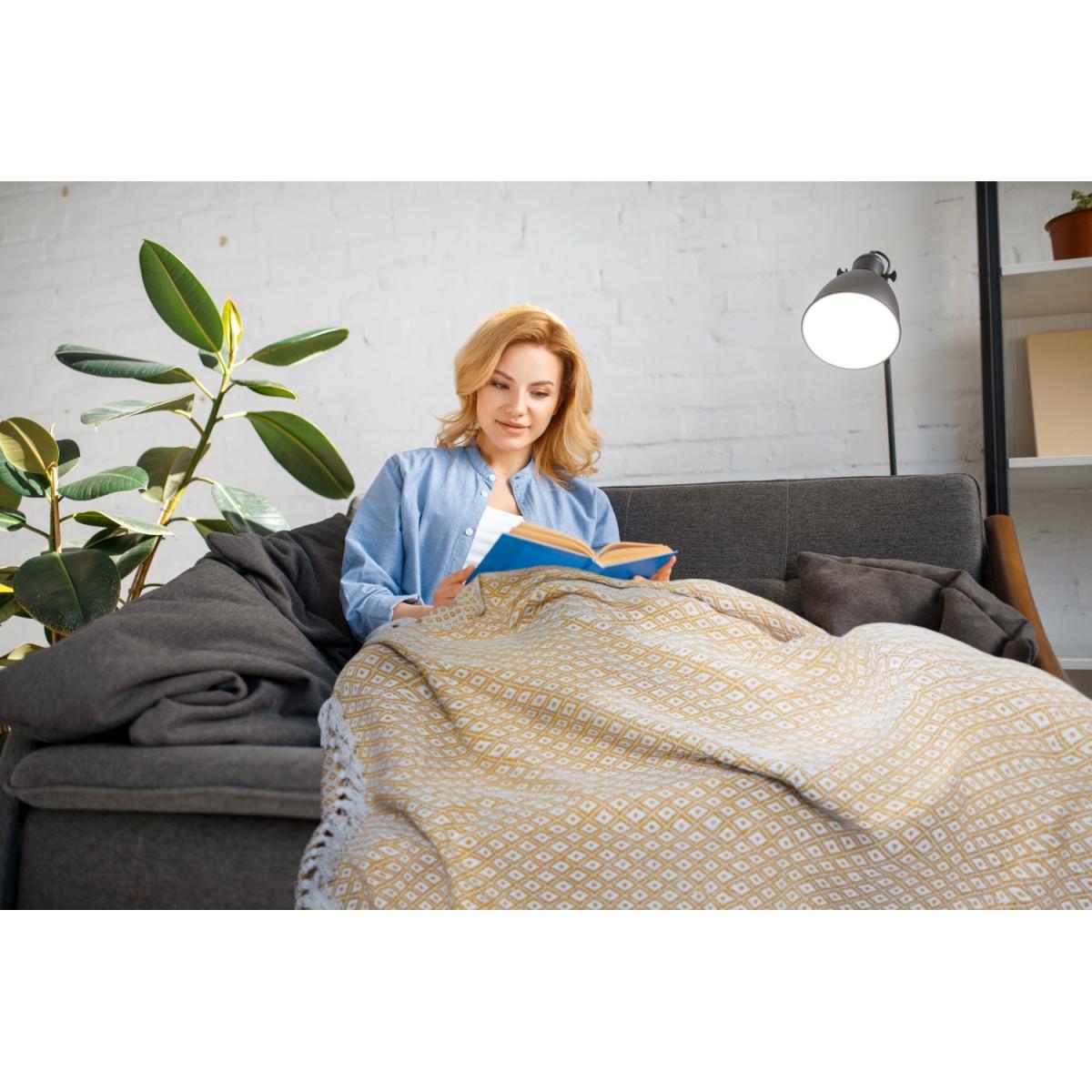 A contemporary geometric design woven using 100 recycled cotton fibres. This throw will coordinate with any modern dcor, and can be draped over a chair or folded at the end of the bed, when not being used to keep you cosy on cold nights. Recycled cotton cuts down on the harsh process of creating brand new cotton products, it is a natural fibre and is biodegradable. We hope you'll get many happy years of use from this throw, but if the time ever comes that you need to dispose of it, it can be recycled again!