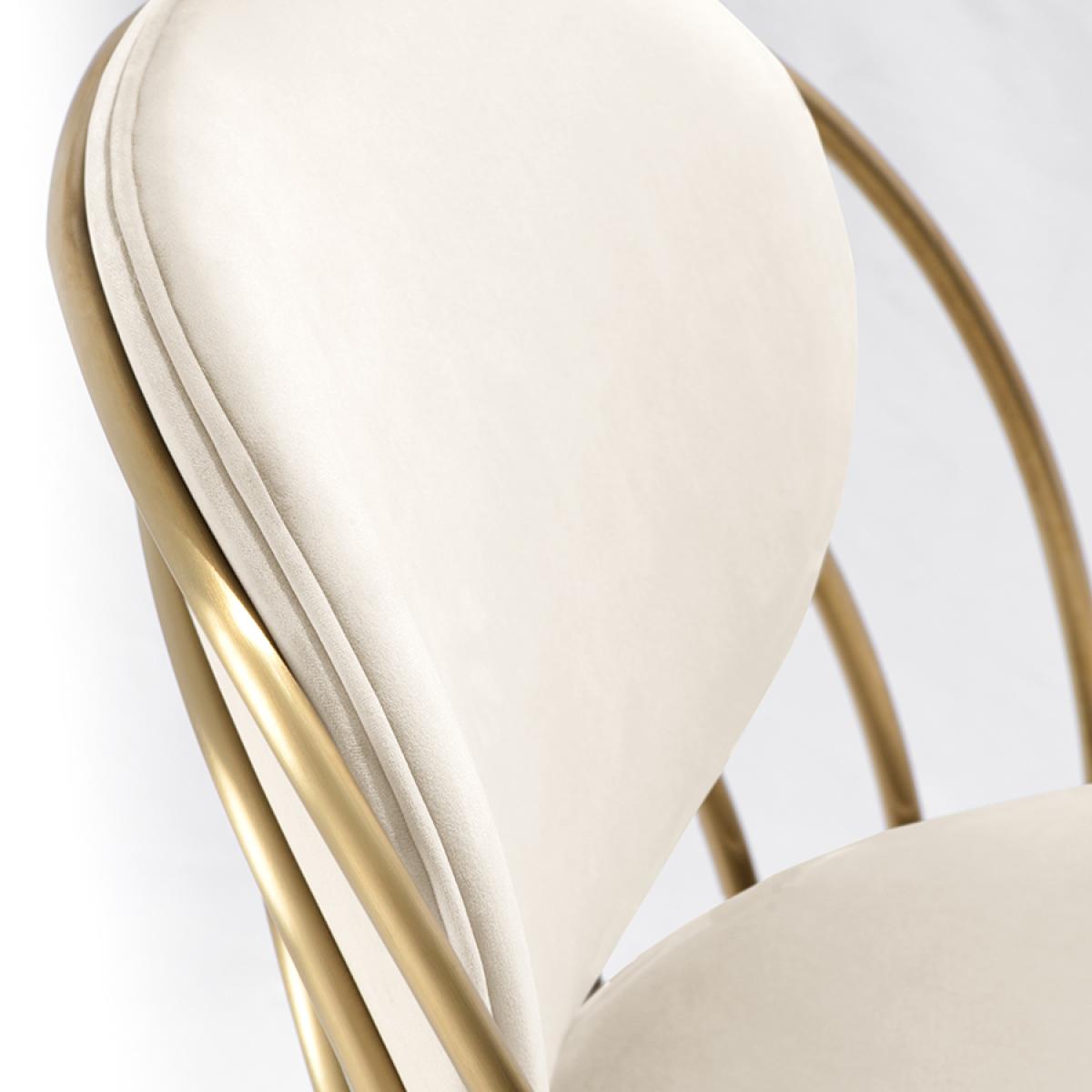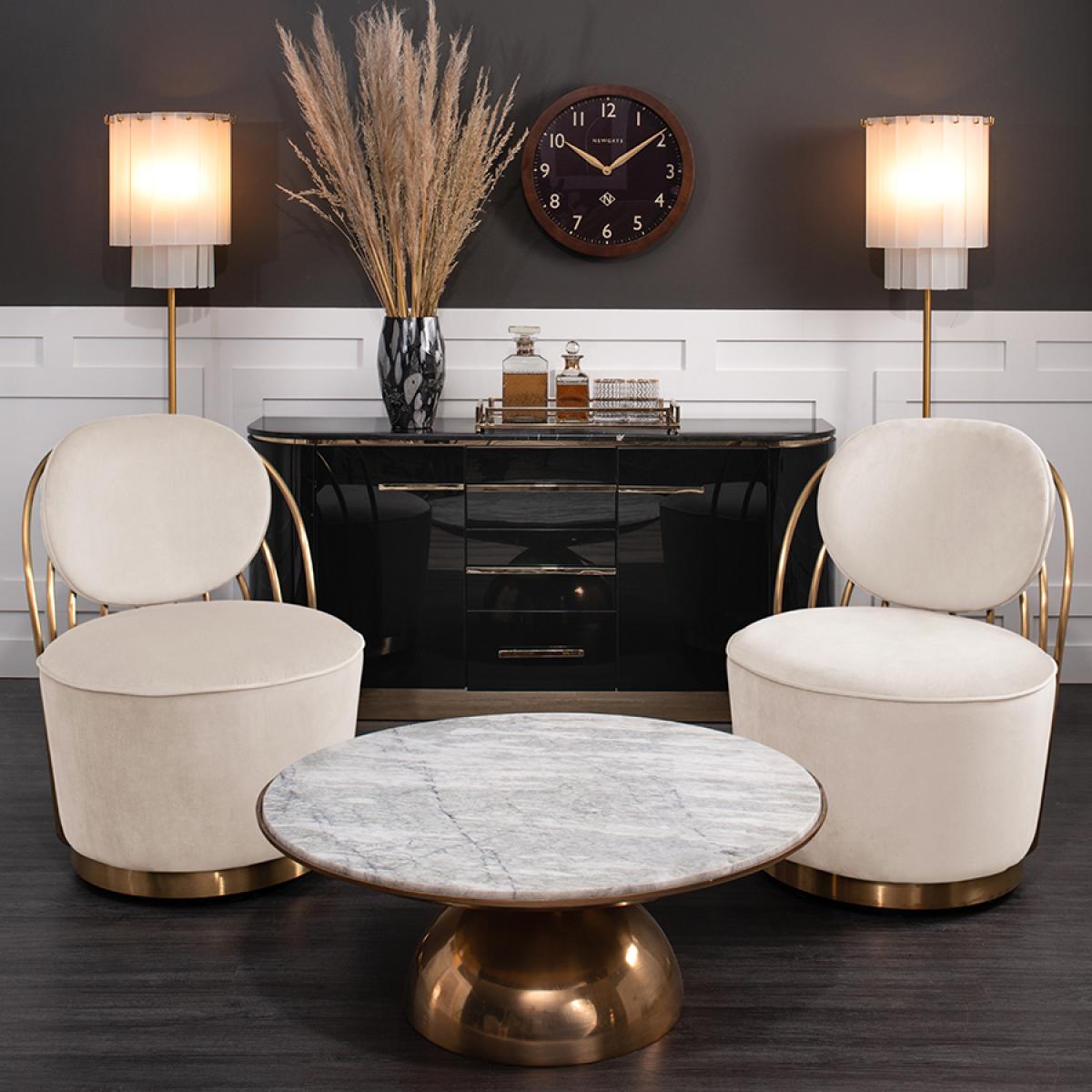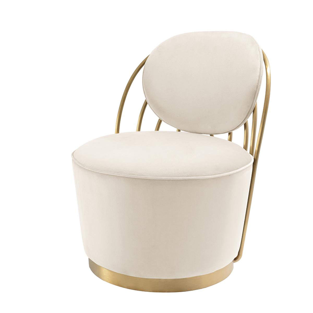 I love this chair for its striking combination of brass detailing and soft chalk upholstery, which makes it a versatile statement piece. It works beautifully in modern or eclectic interiors, adding a touch of glamour without feeling overly luxe. Practical styling tips include pairing it with a textured rug or layered cushions to soften its bold lines, and it works well as an accent in living rooms or bedrooms alike. Its swivel feature also makes it functional for versatile seating arrangements, perfect for adding flair and flexibility to your space.