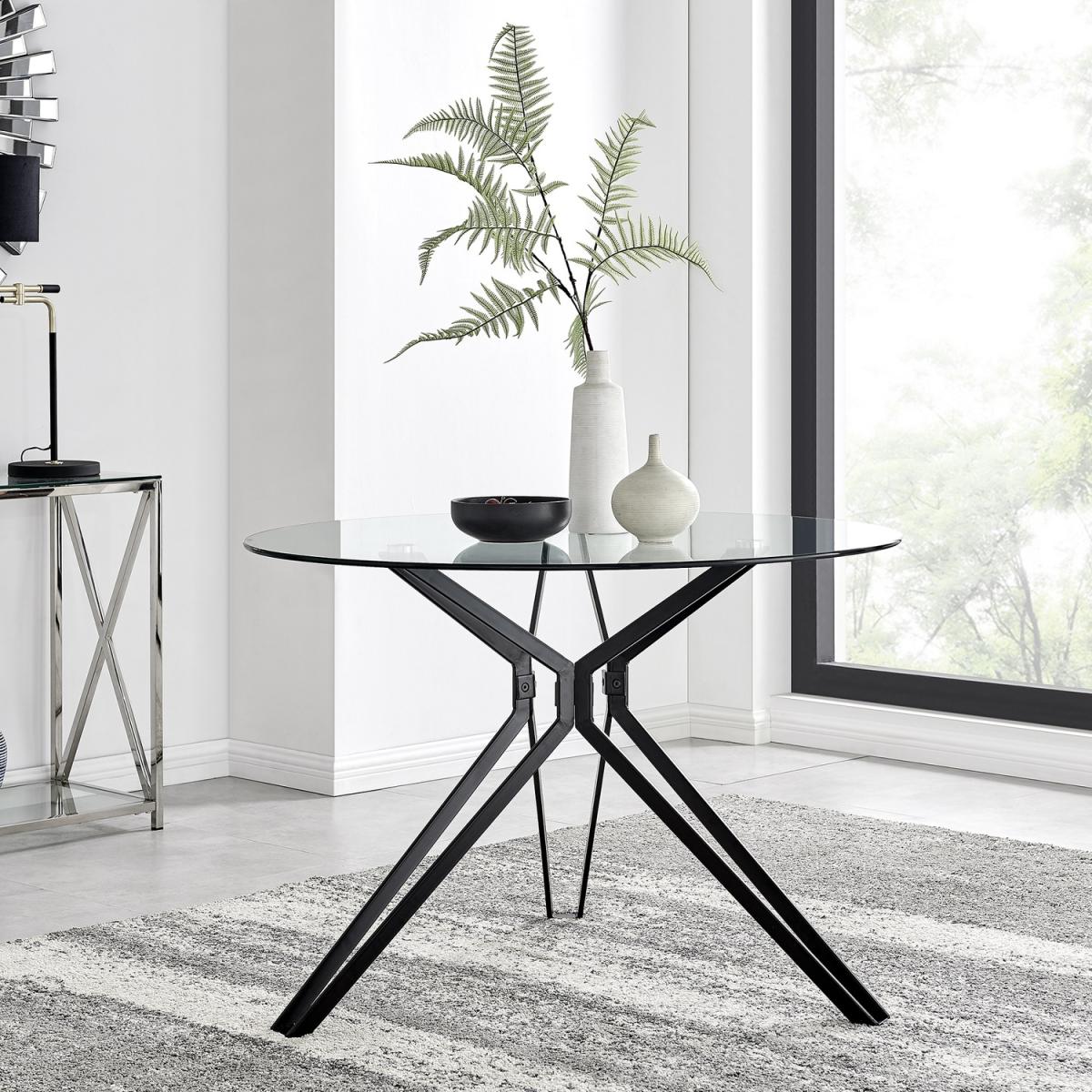 The contemporary, clean lines of the Cascina round table make it hard to resist for those looking for elegance and functionality in their dining room. The exquisite matt-black angled hairpin legs perfectly support the 110cms diameter clear glass top, the textures complimenting the striking design. With ample space for up to 4 guests, this table is perfect for the modern home.