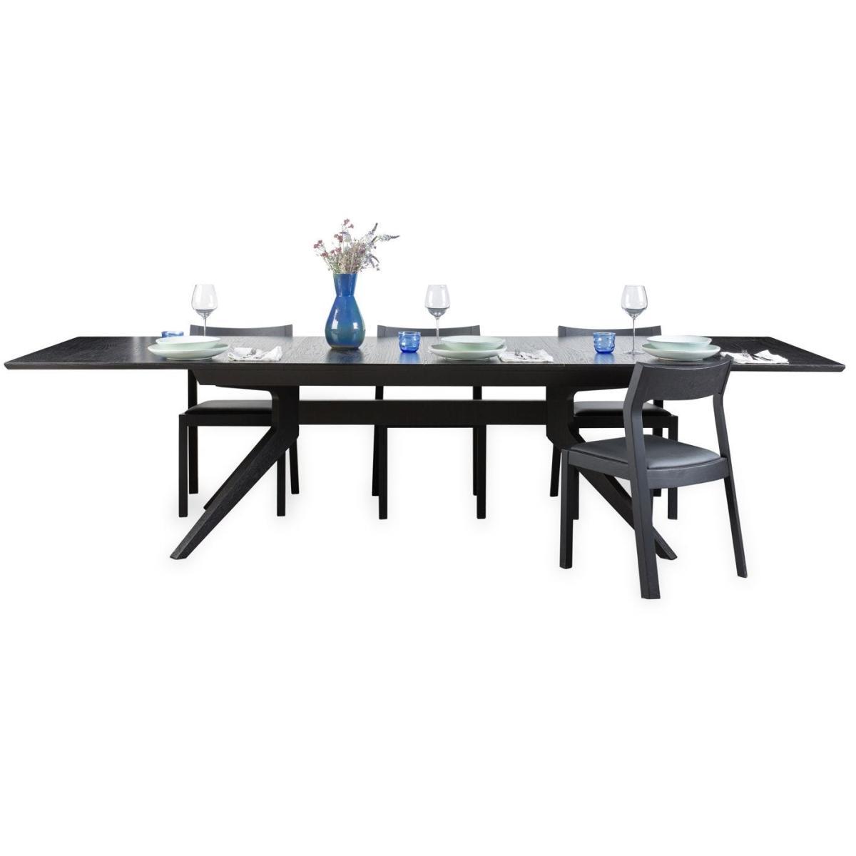 Designed in London by Matthew Hilton, the Cross is a multi-award winner with accolades including the Elle Decoration Award for Best in Furniture in 2006, the Homes & Gardens Classic Design Award in 2007 and the Design Guild Mark in 2008. Made from a choice of oak, wenge or walnut, this table features a smooth veneer along its top with angled legs providing its distinctive profile. The design exemplifies Matthew Hilton's ultra-modern approach to wooden furniture craft. Practical and adaptable, simple lines build to create the contemporary shaped base while two panelled leaves are cleverly concealed within the frame to quickly reconfigure for extra dining space.
