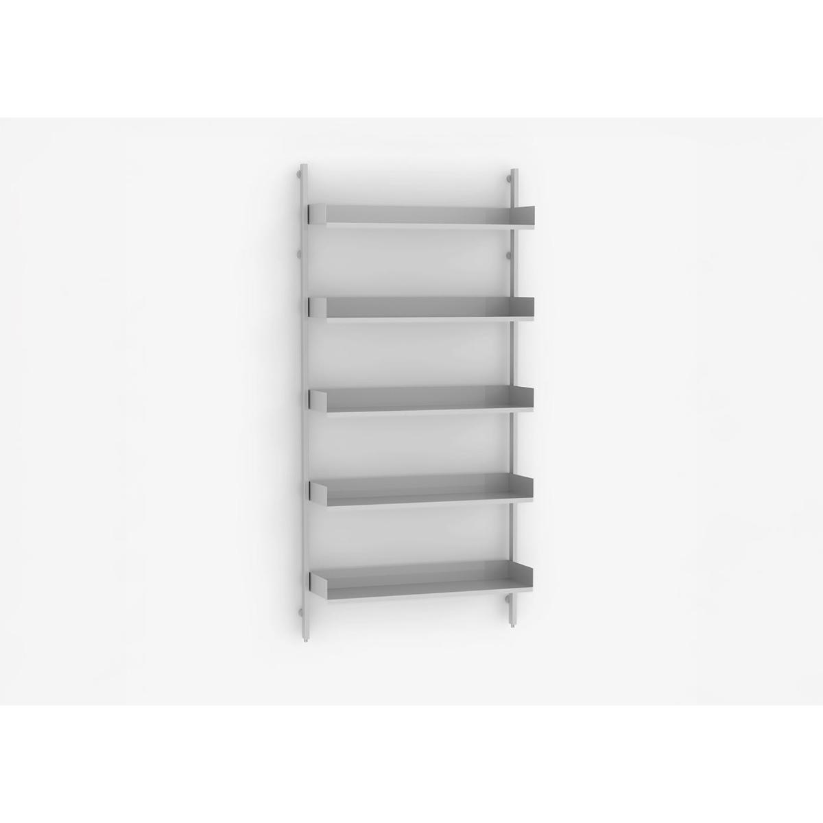 Slot, designed by Terence Woodgate, is an adjustable wall-mounted shelving system with hidden fixing holes and slots. Designed with simplicity at its core, Slot was created using the principles of reverse engineering; by positioning the vertical supports away from the wall, the shelves can be fixed to hidden slots facing the wall, creating a seamless look.