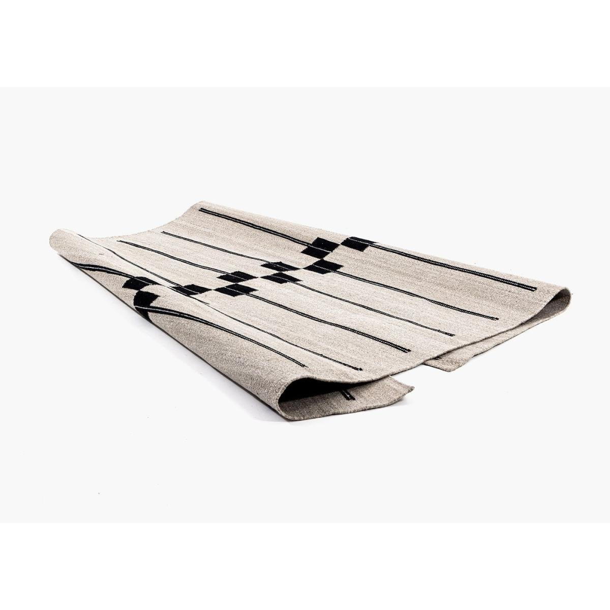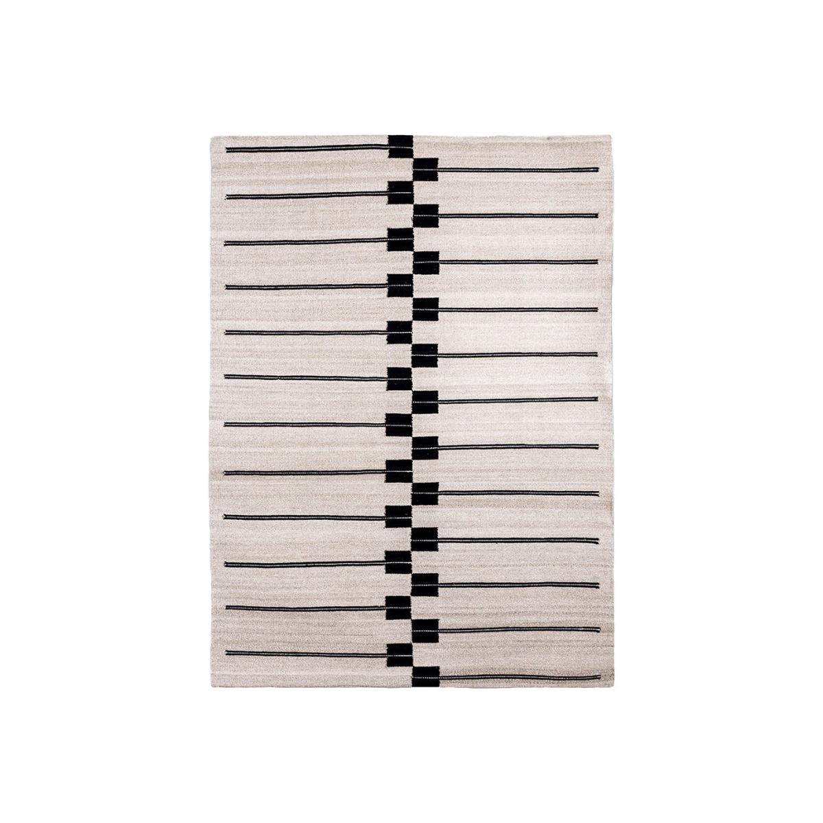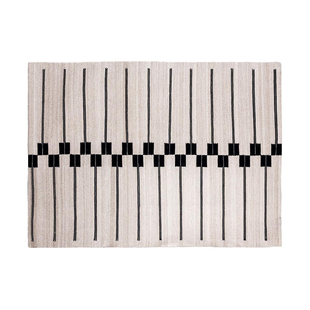 The Spine rugs are a new pair of flat-weave designs by Eleanor Pritchard with Case. Both designs explore simple geometric placement patterns, drawing on arrangements of blocks and bars.